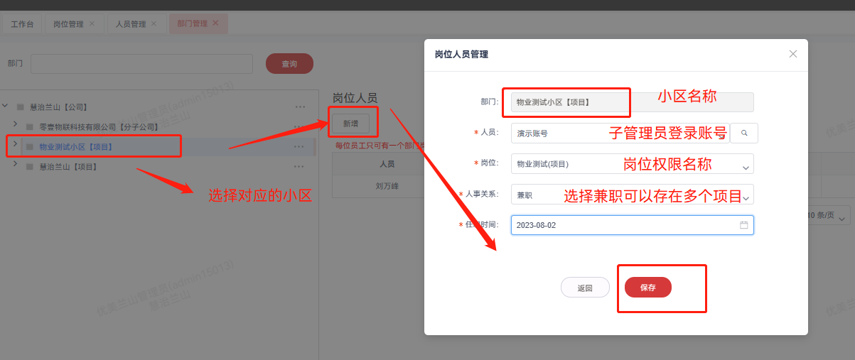 ### **若一个管理员需要兼职多个小区,可以在一个小区设置档案身份,其他小区设置兼职身份即可**