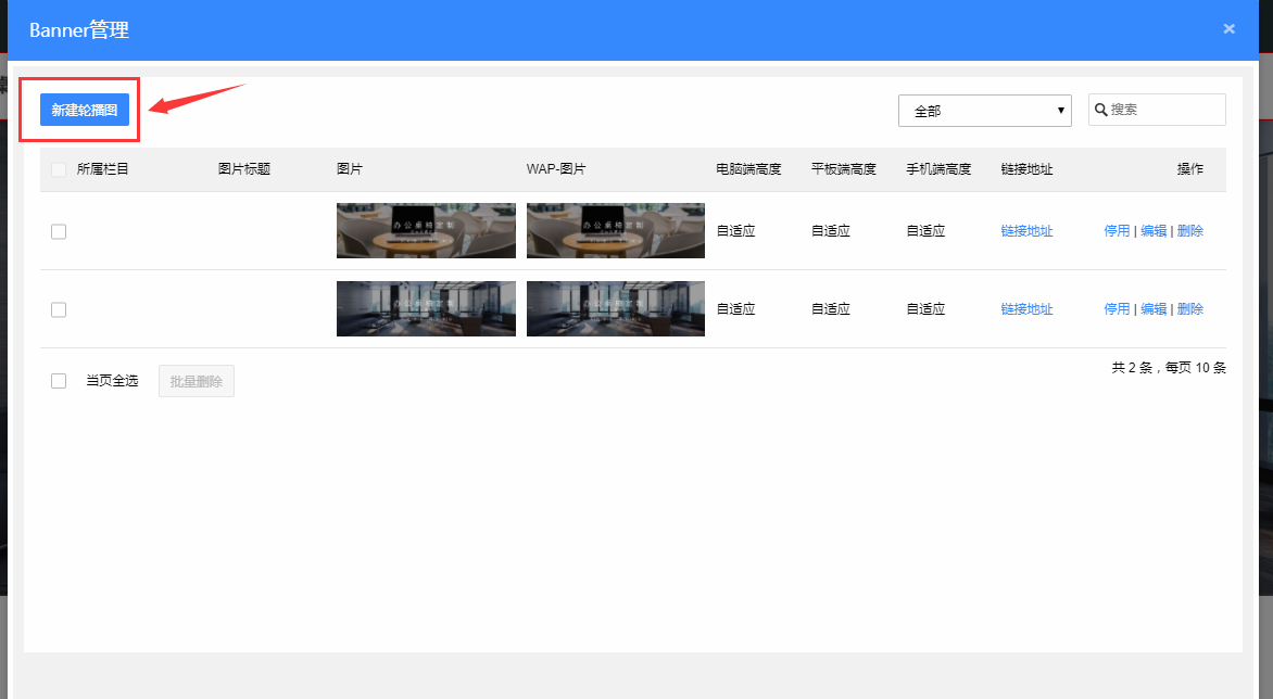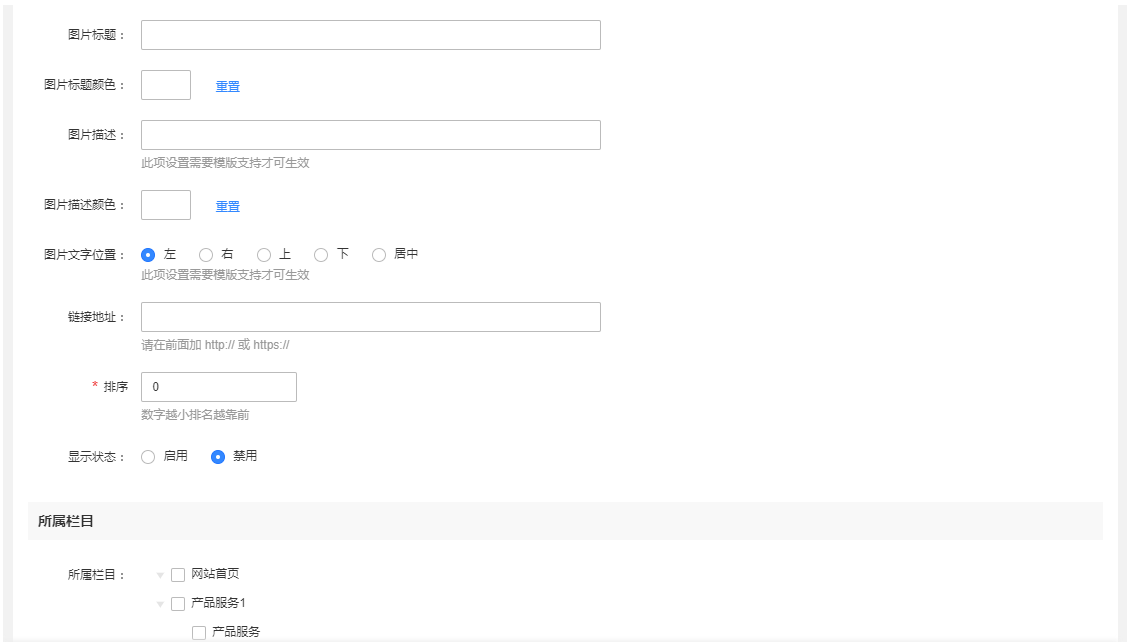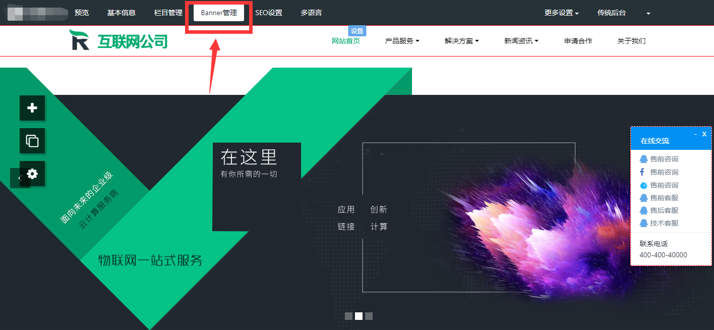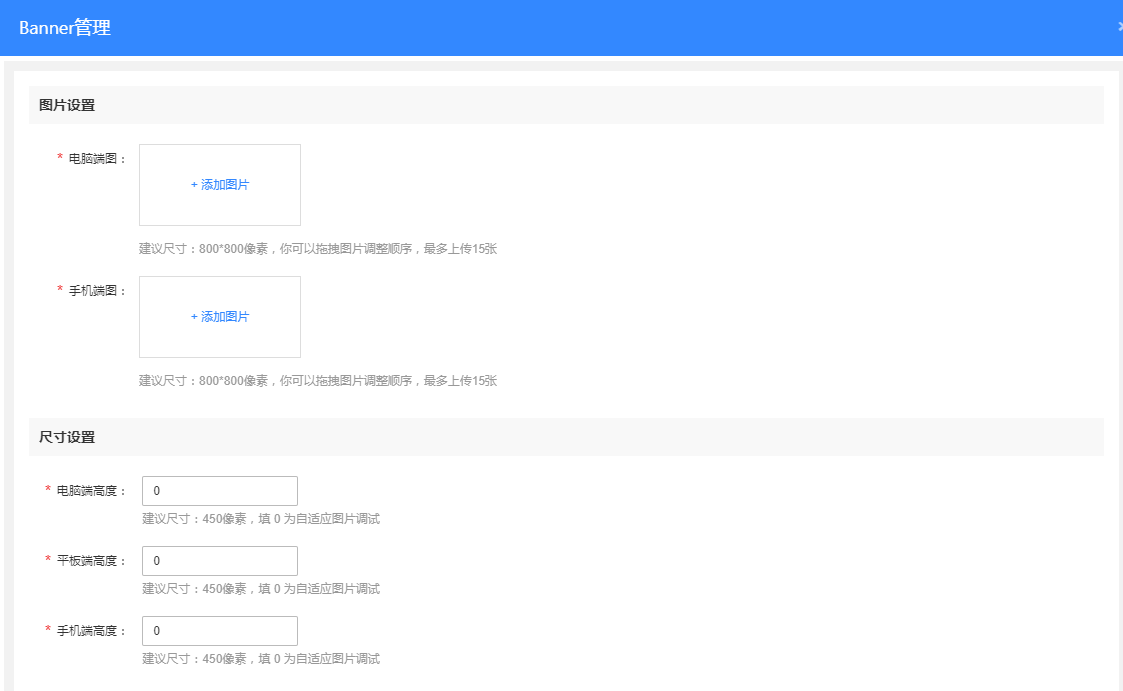 点击Banner管理,上传banner图编辑尺寸、基础设置以及所属栏目