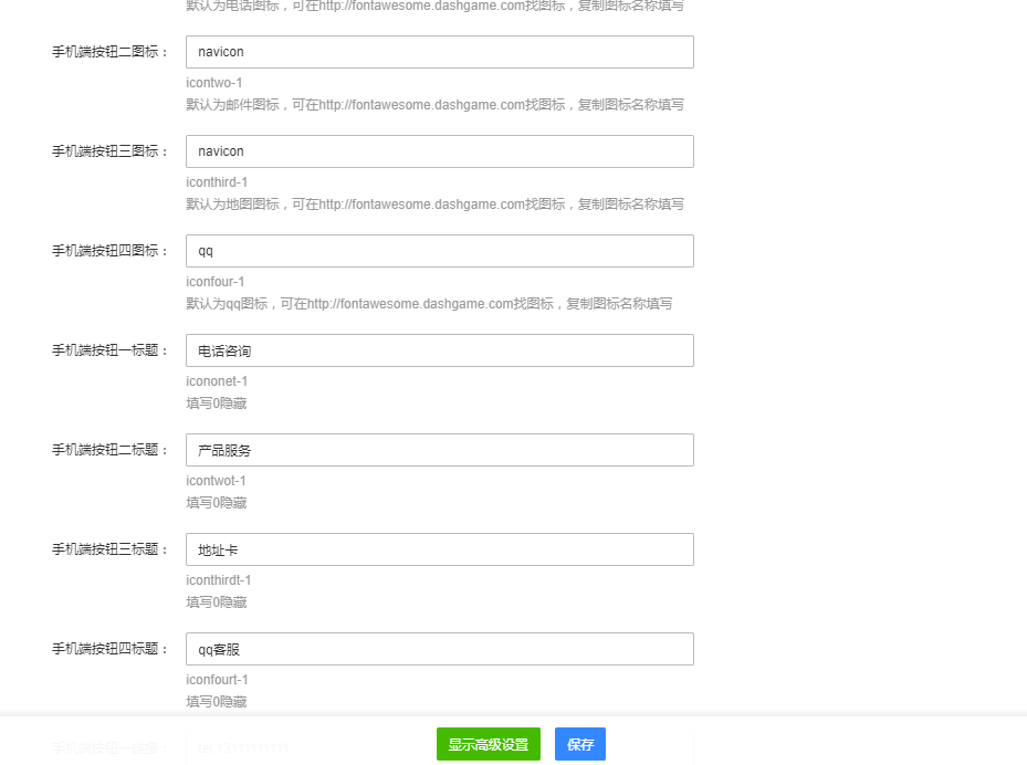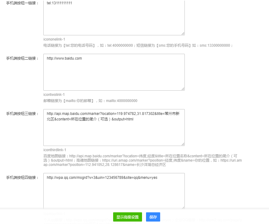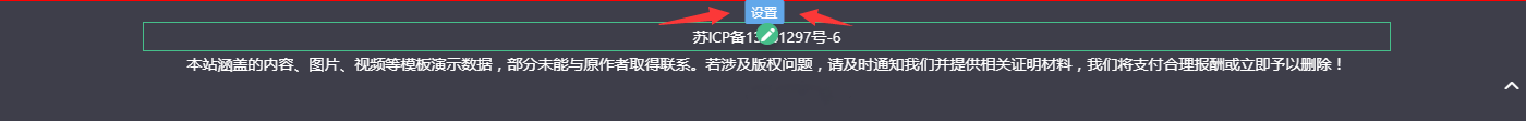 点击区块的设置和内容按钮,可进行更多底部信息设置