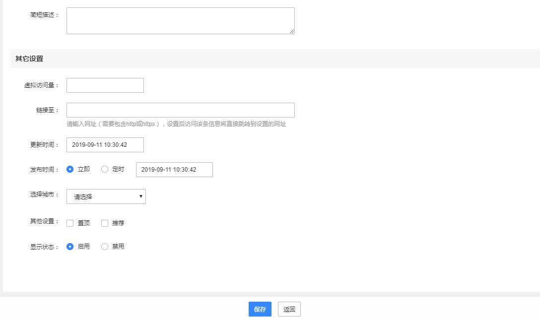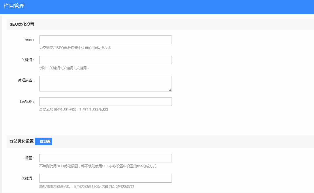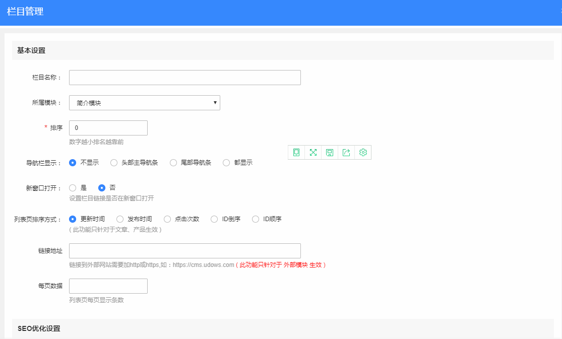 点击新增栏目,编辑栏目基本信息及搜索引擎优化设置