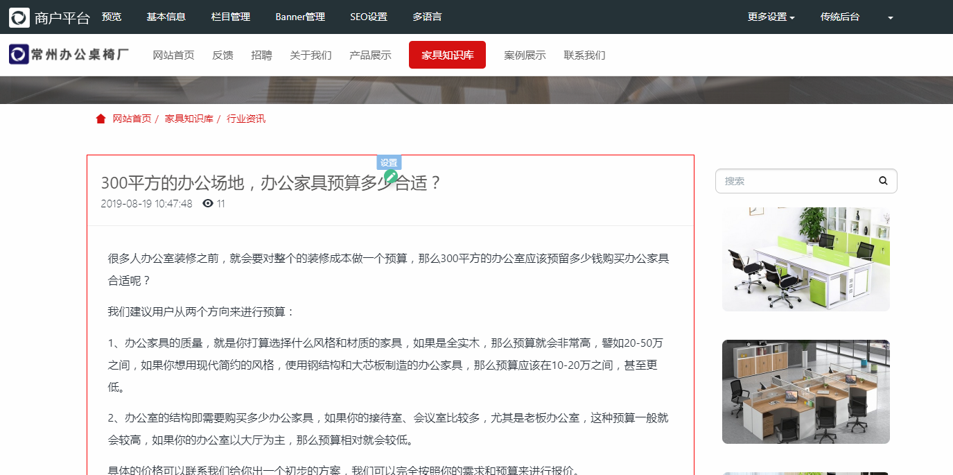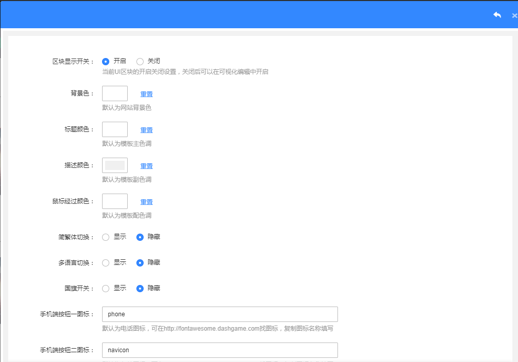 设置:不同模板的新闻列表页展示风格是不一样的,所以对应的设置中的选项也不一样,通过区块的设置按钮,可以设置当前区块的风格色调,区块开关等。