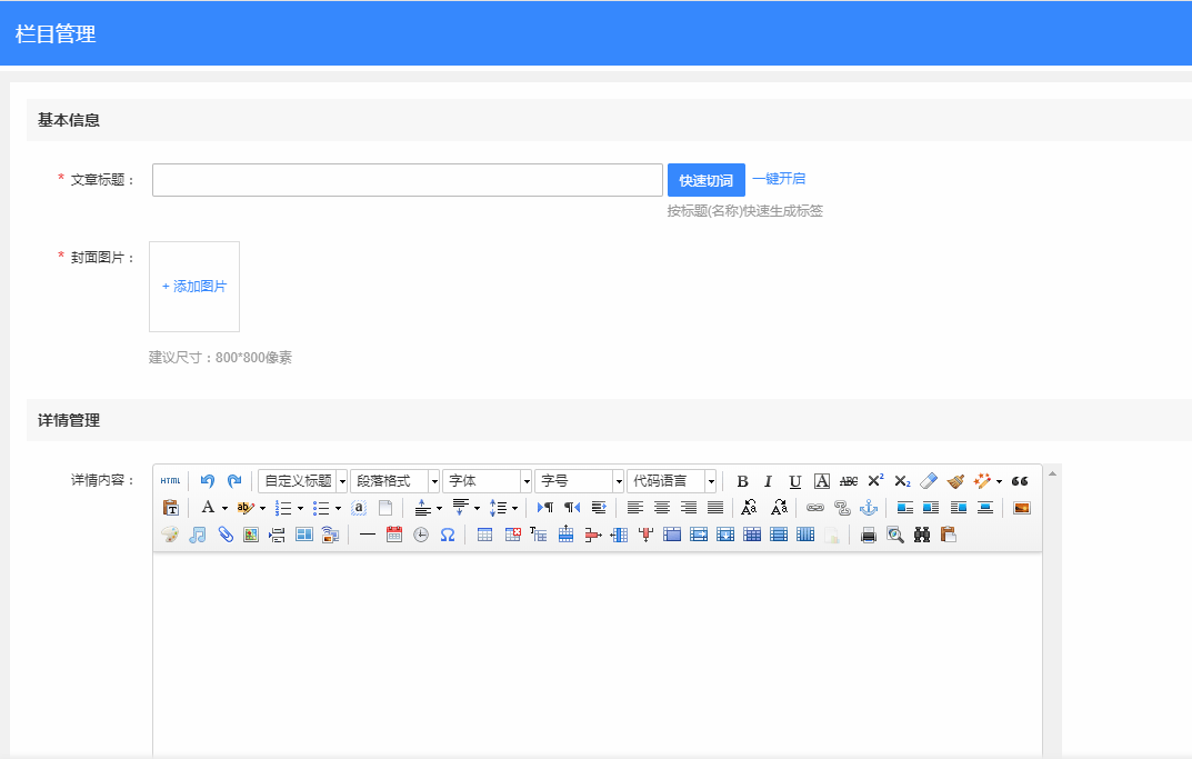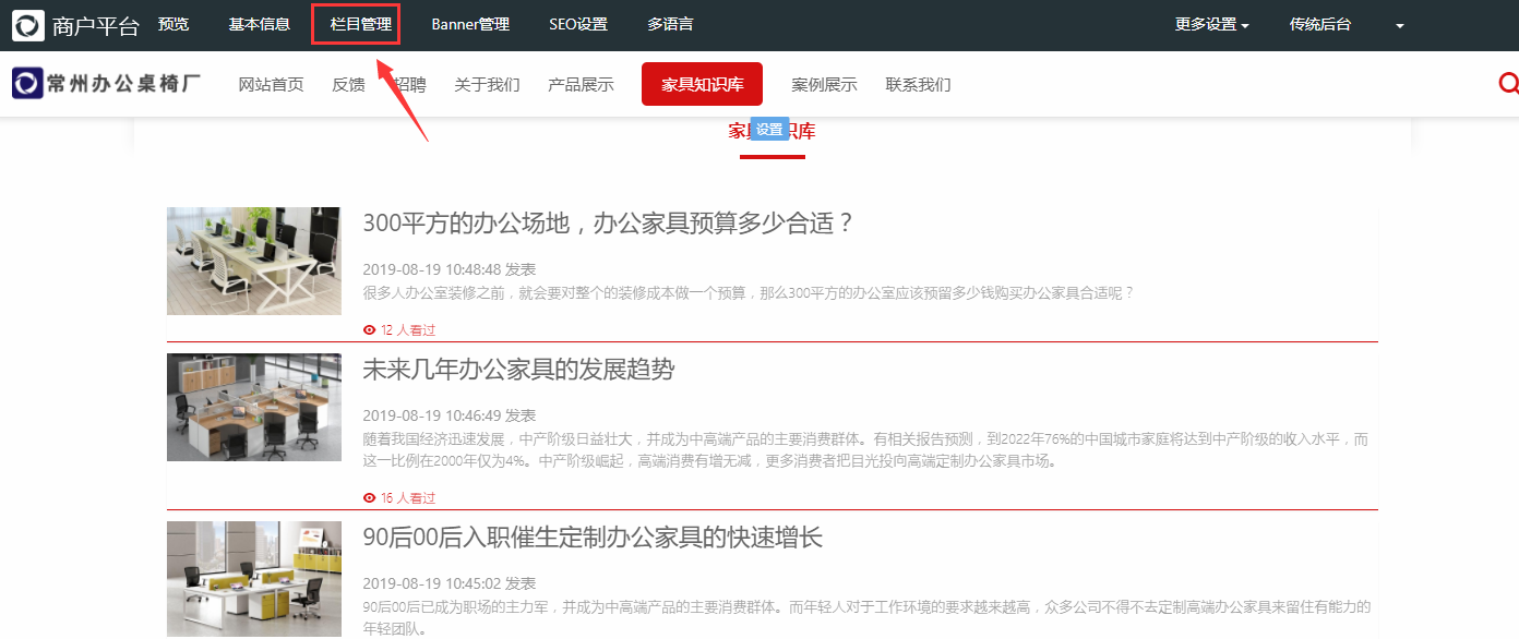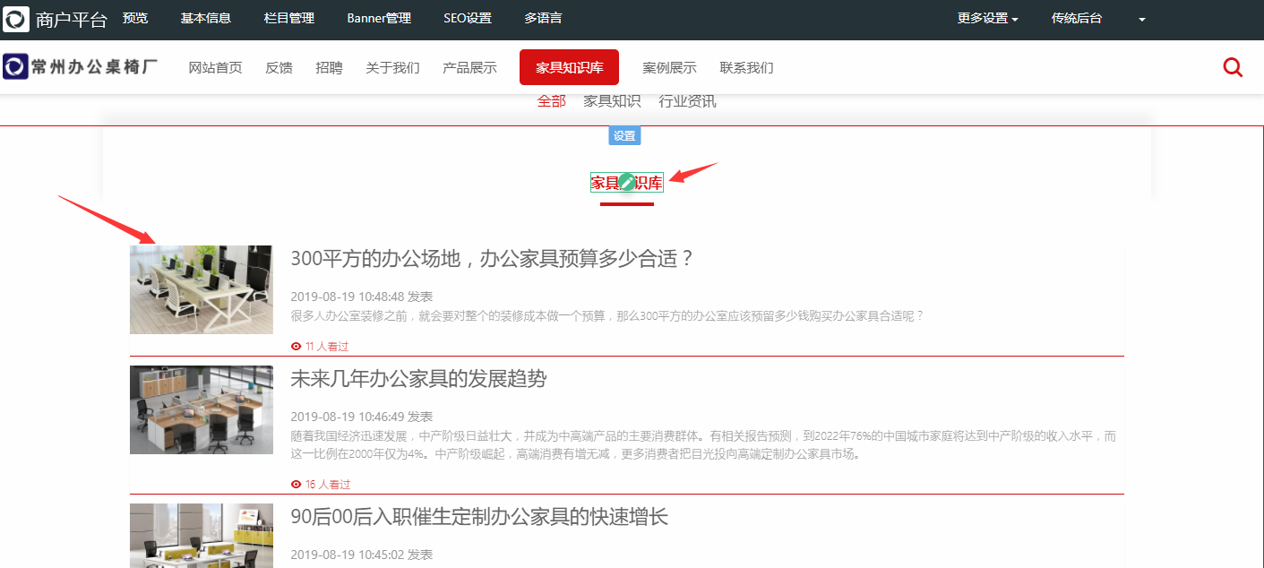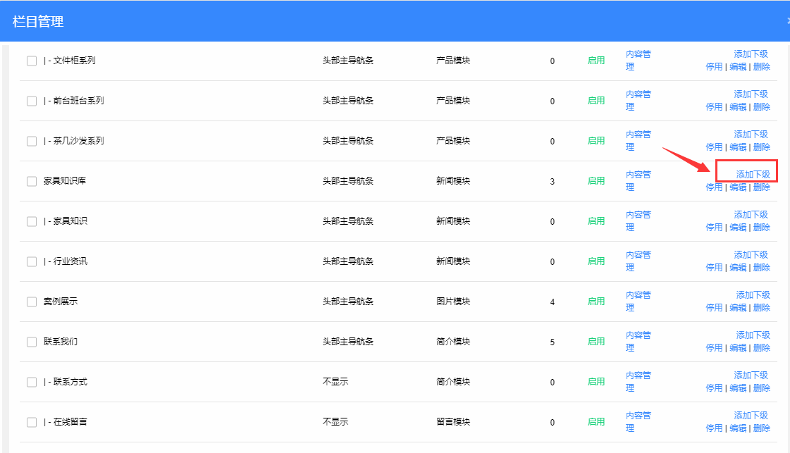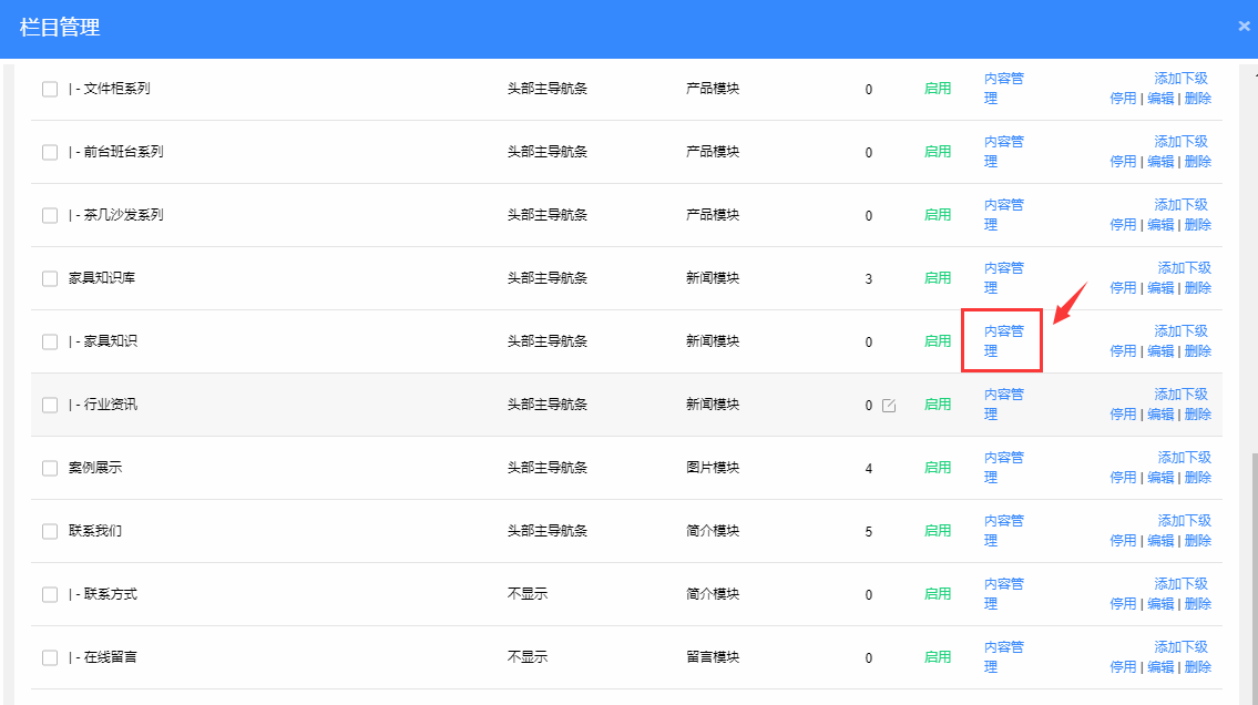 点击栏目管理,进入到新闻栏目的内容管理,编辑新闻的内容