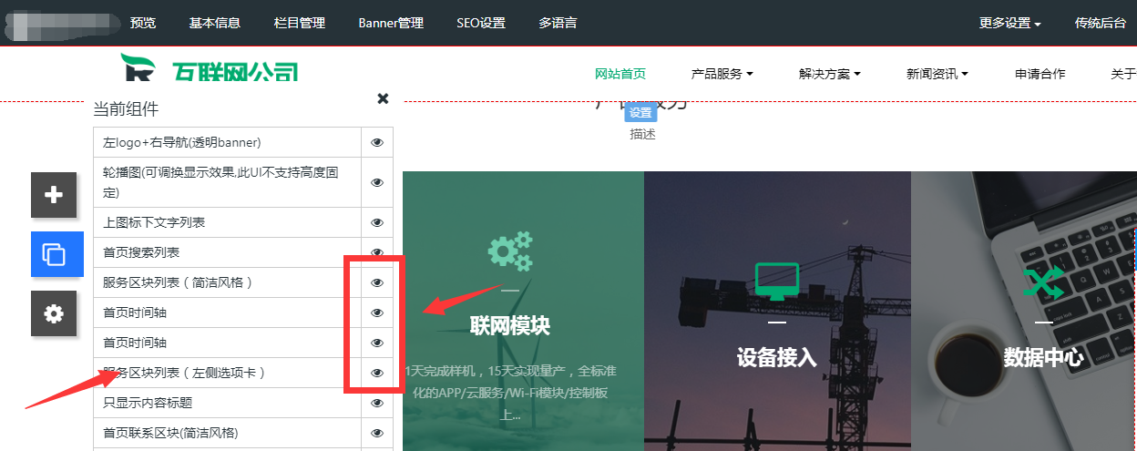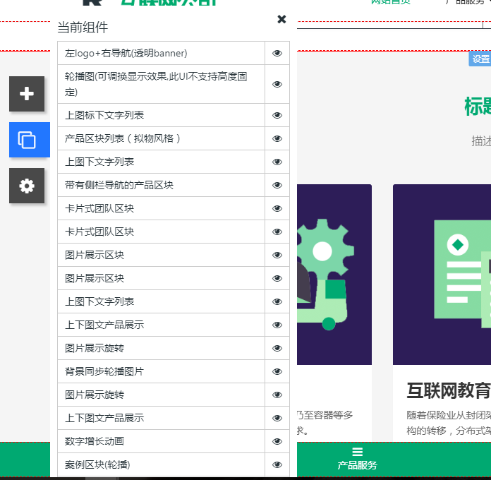 1、进入建站系统,点击左侧“当前组件”即可看到当前页面所有模块。