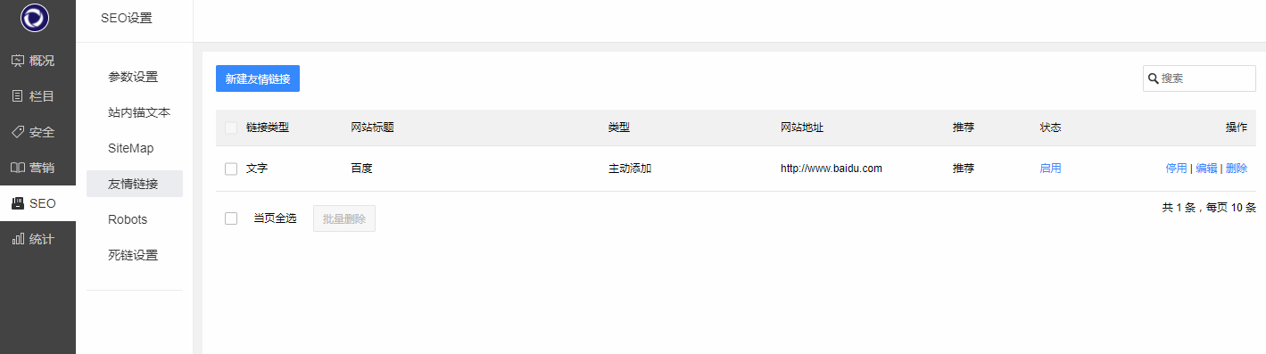 是否传递权重,勾选后网站不向链接网址传递权重。