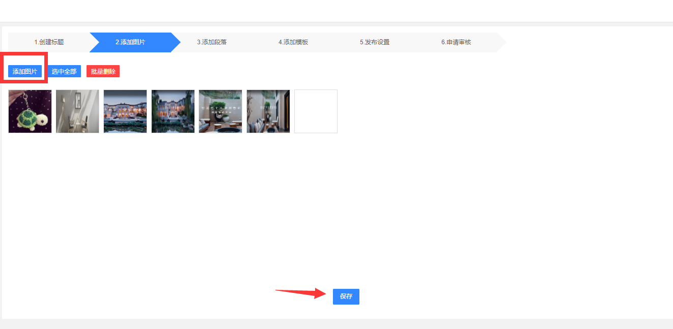 添加图片:上传后会通过接口直接上传到网站空间;