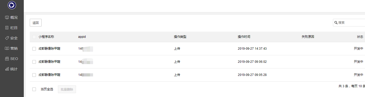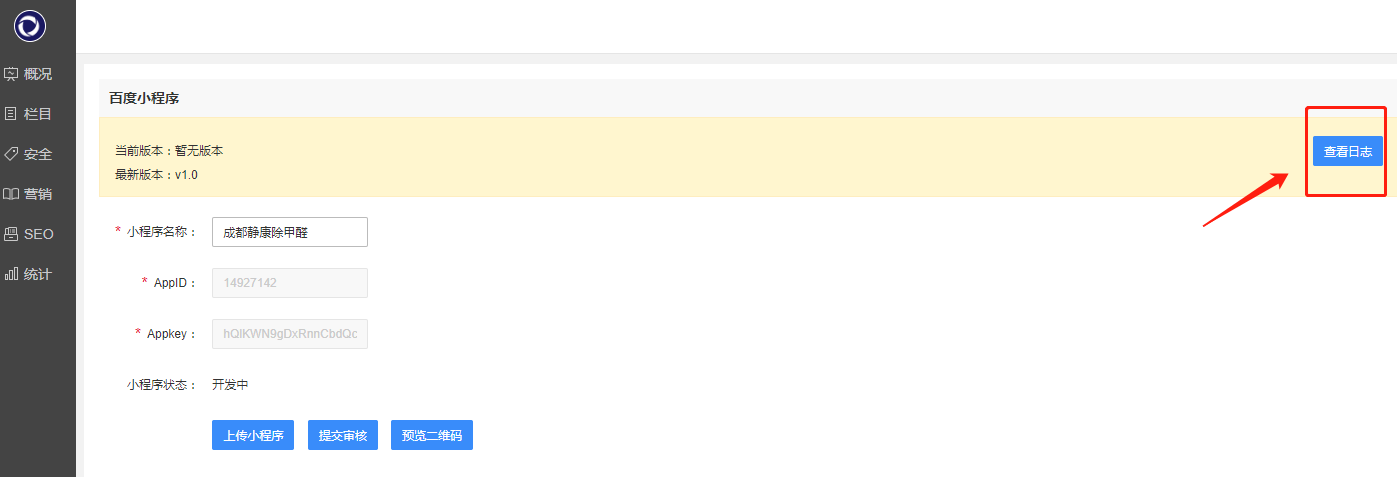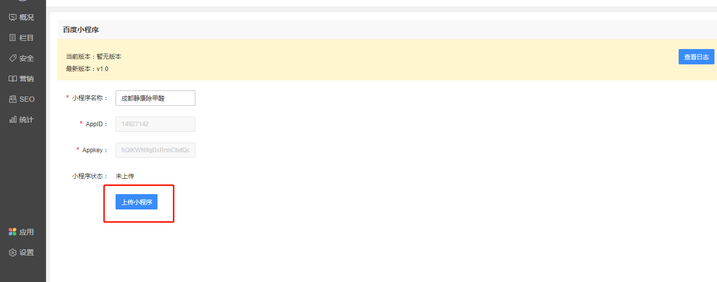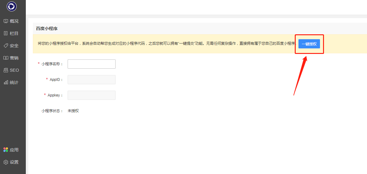 授权成功之后小程序的名称、APPID及appkey会获取到后台,如下图所示: