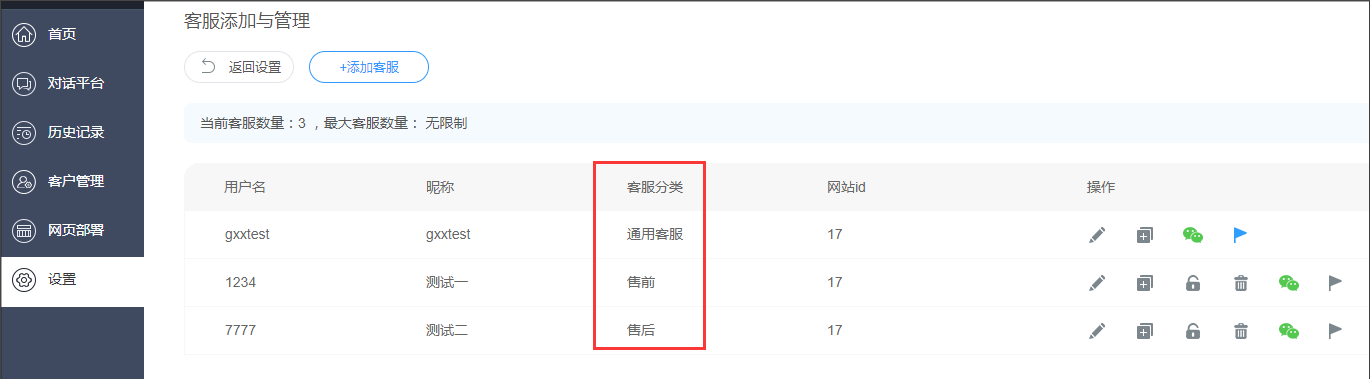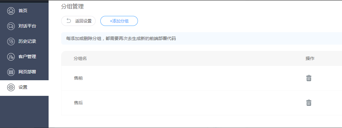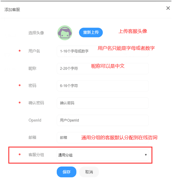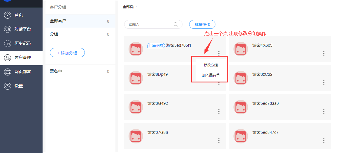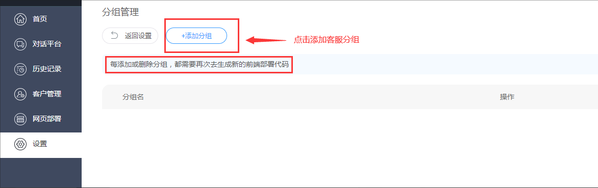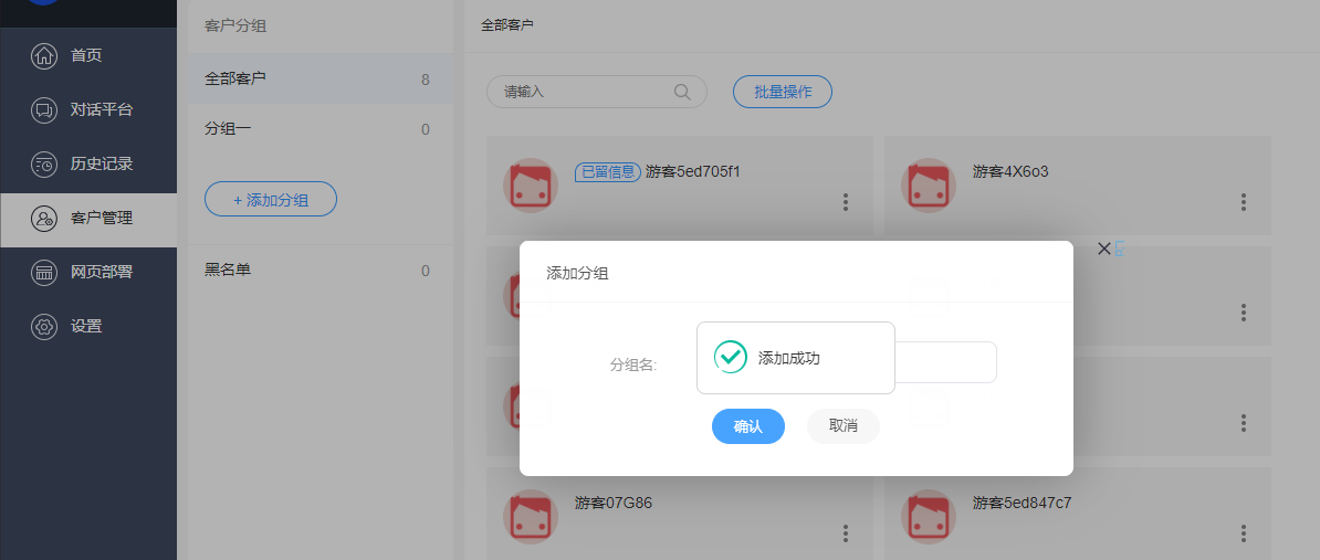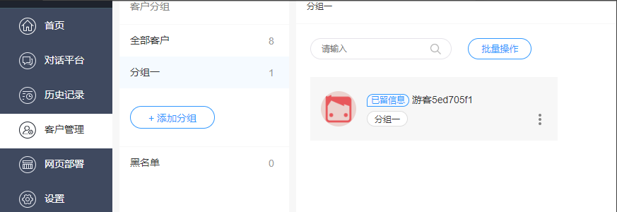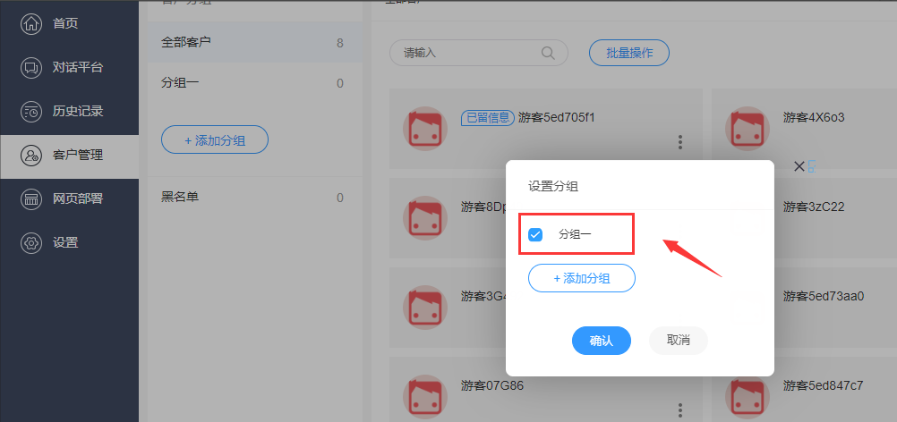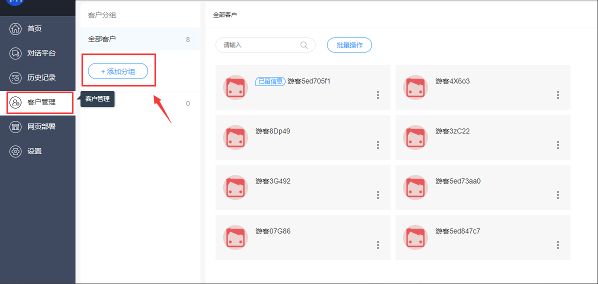 点击客服管理—添加分组 可对来访的用户进行分组分配