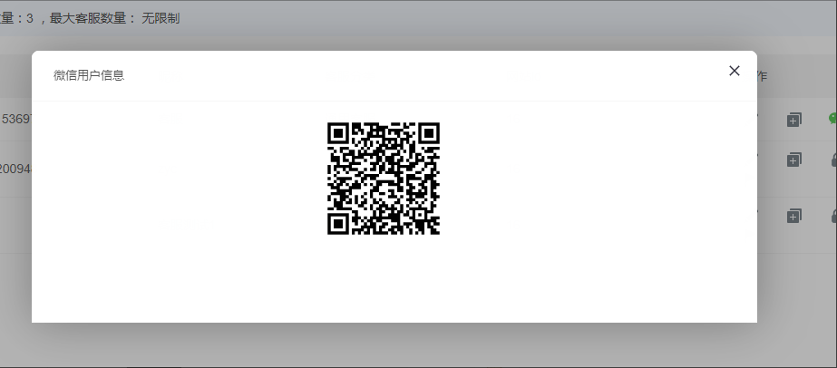 点击微信图标之后会出现一个二维码,客服微信扫这个二维码