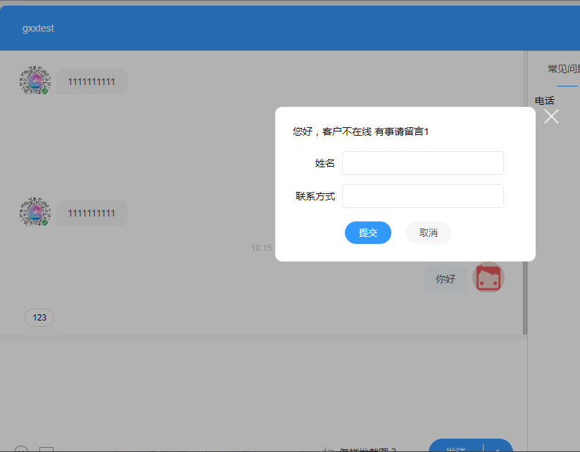 迷你窗口当客服离线时会出现如下图所示的图标,并弹出留言信息
