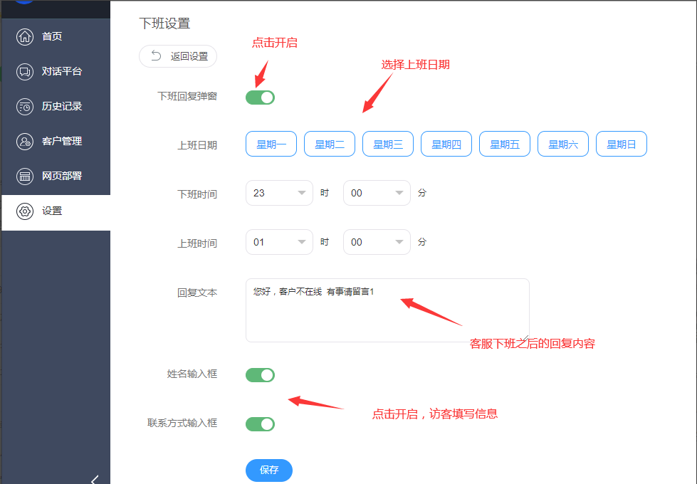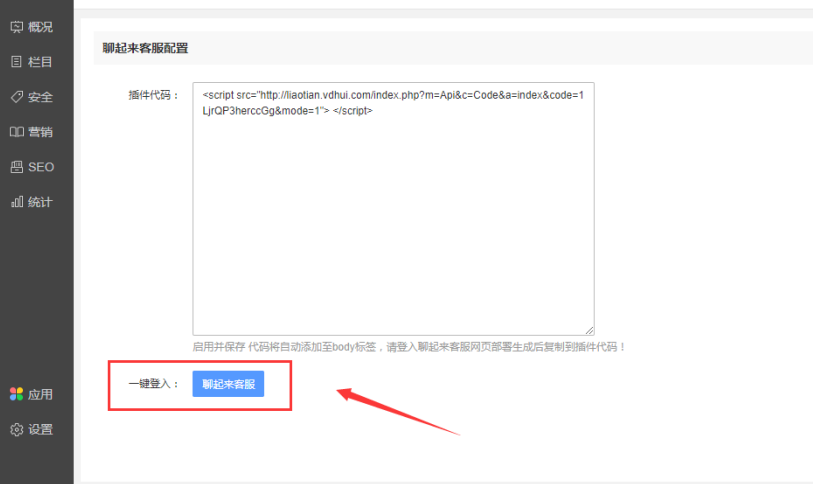 将生成的js代码复制进入网站的第三方代码的底部代码中并且点击保存 则客服创建成功