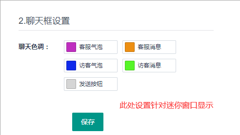 **注:无论更改任何窗口模式都需要重新生成js并且复制进入第三方代码点击保存**