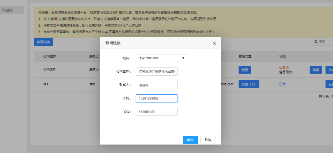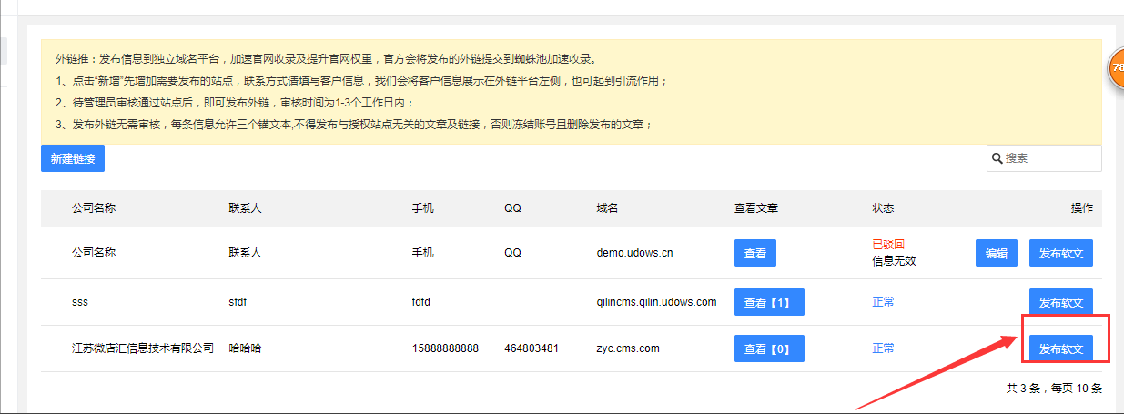 **发布外链无需审核,每条信息允许三个锚文本,不得发布与授权站点无关的文章及链接,否则冻结账号且删除发布的文章**