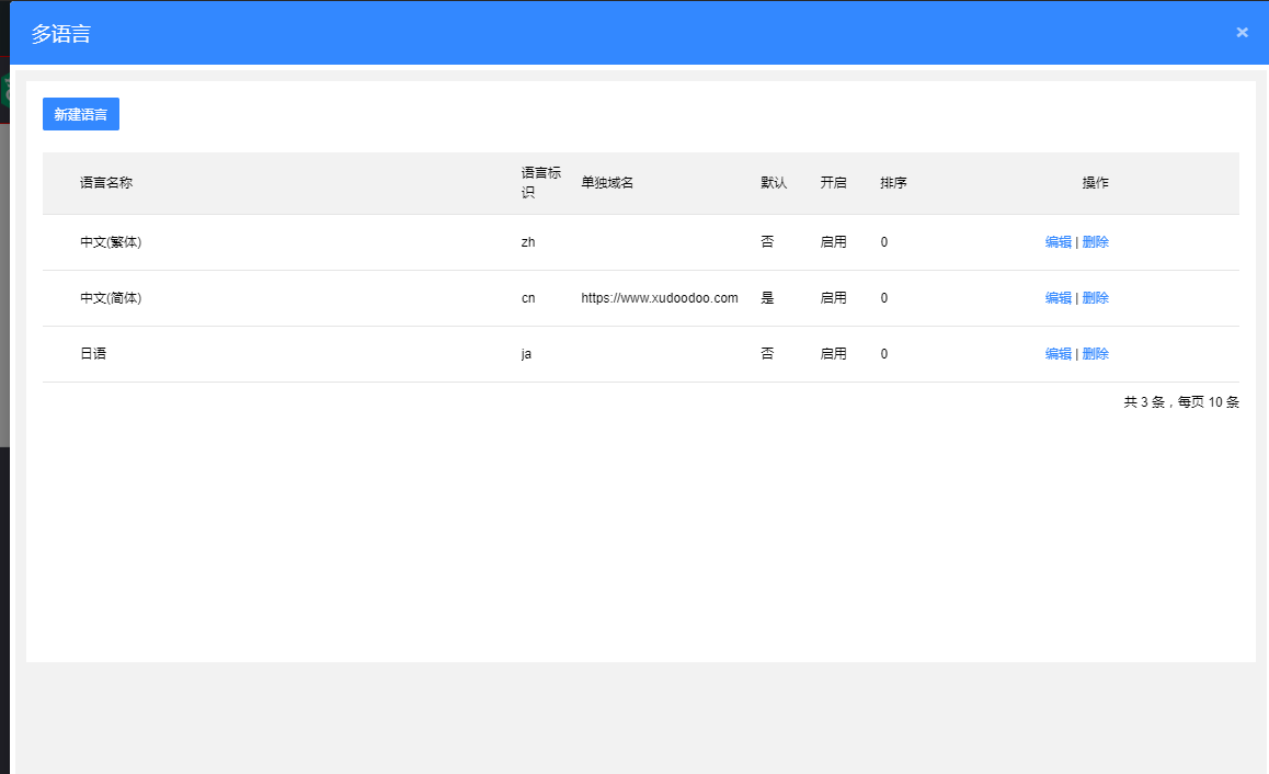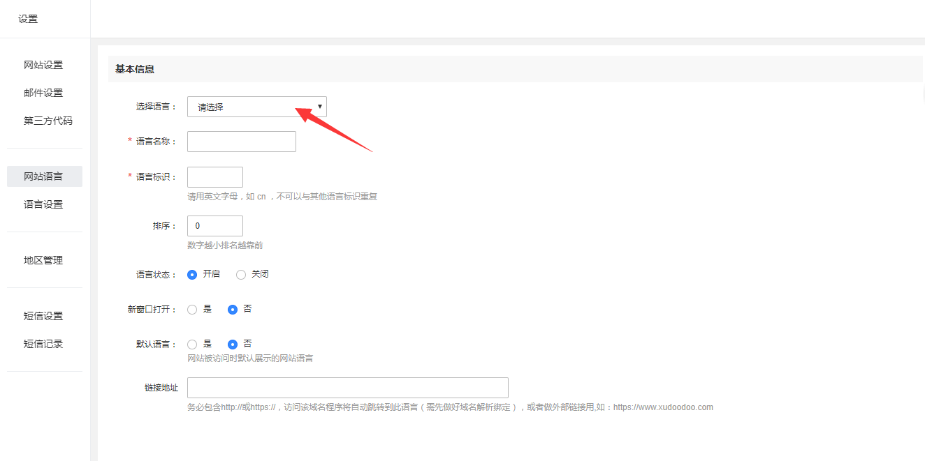 可直接选择语言,或者自定义(例如一个企业每个分部或子公司需要一个站点时常用到);