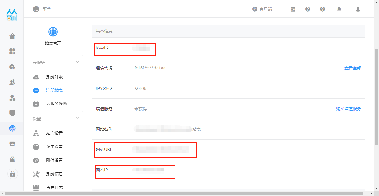 * 将您的微擎站点域名、站点ID、服务器IP,发给销售,销售授权完后会提供一个授权码