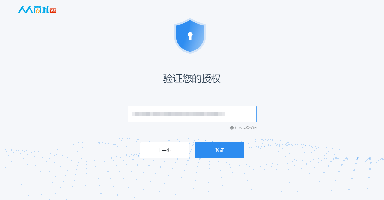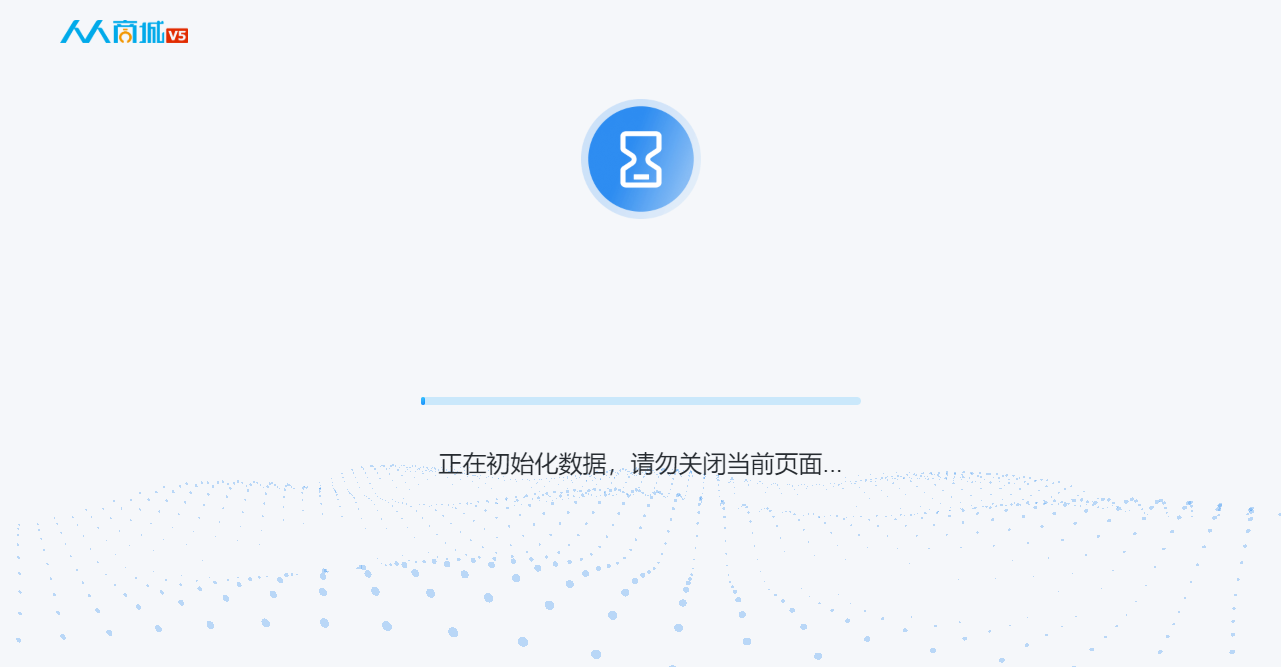 * 进入人人商城V5模块,填入授权码,等待初始化数据,中间不要关闭窗口,耐心等待