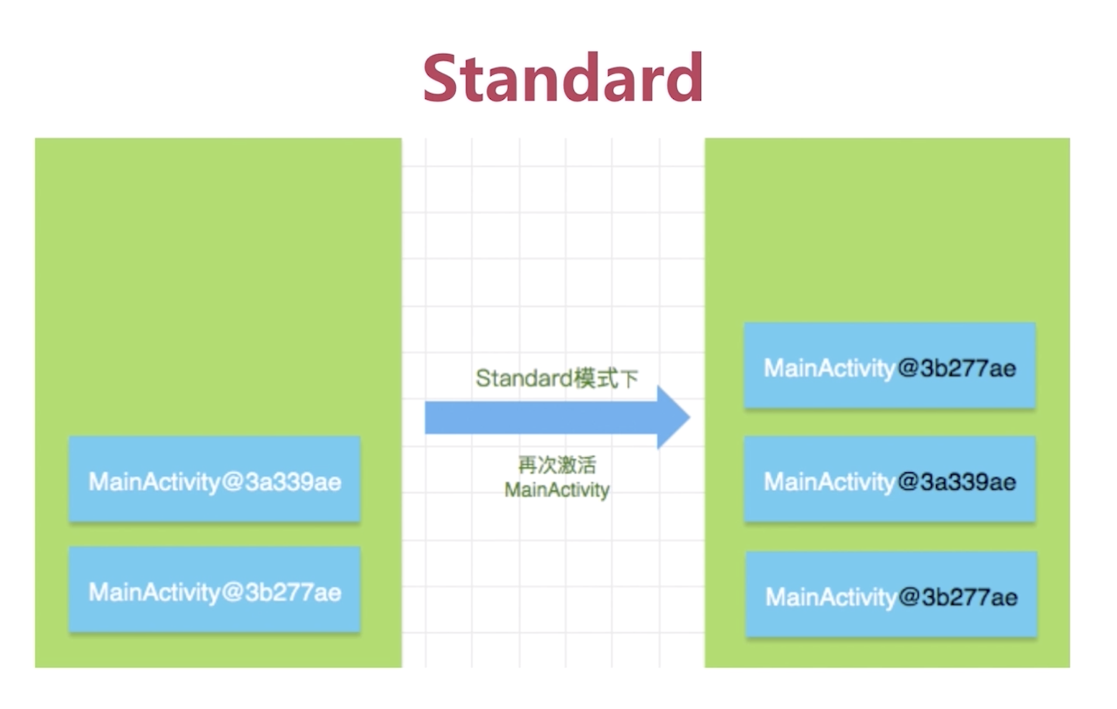 **含义**:每次启动一个`Activity`就会创建一个新的实例。