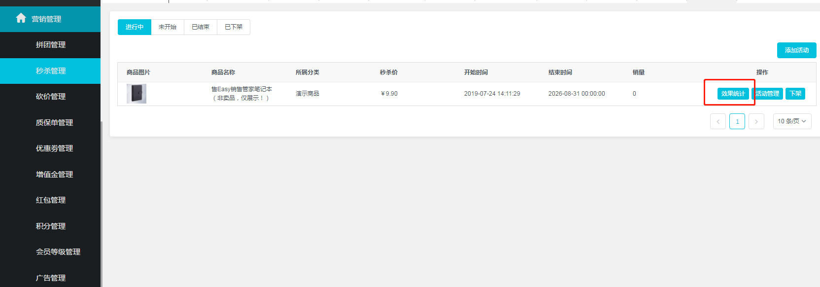 在【营销管理】——【秒杀管理】中,点击【添加活动】,然后点击【选择商品】选择想要参加活动的商品。填写完相关资料后,点击确认,活动即添加完成。