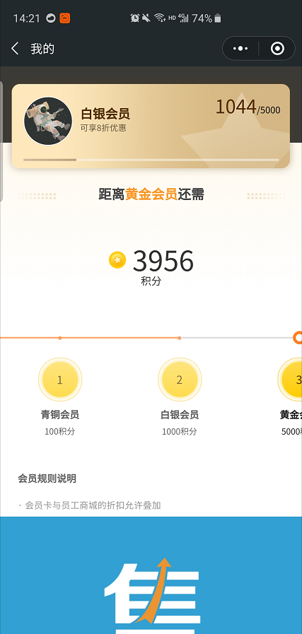 到达相应的等级后,在商城里也可以看到自己的折扣特权。