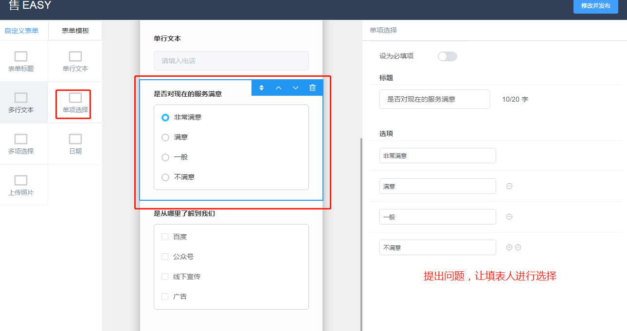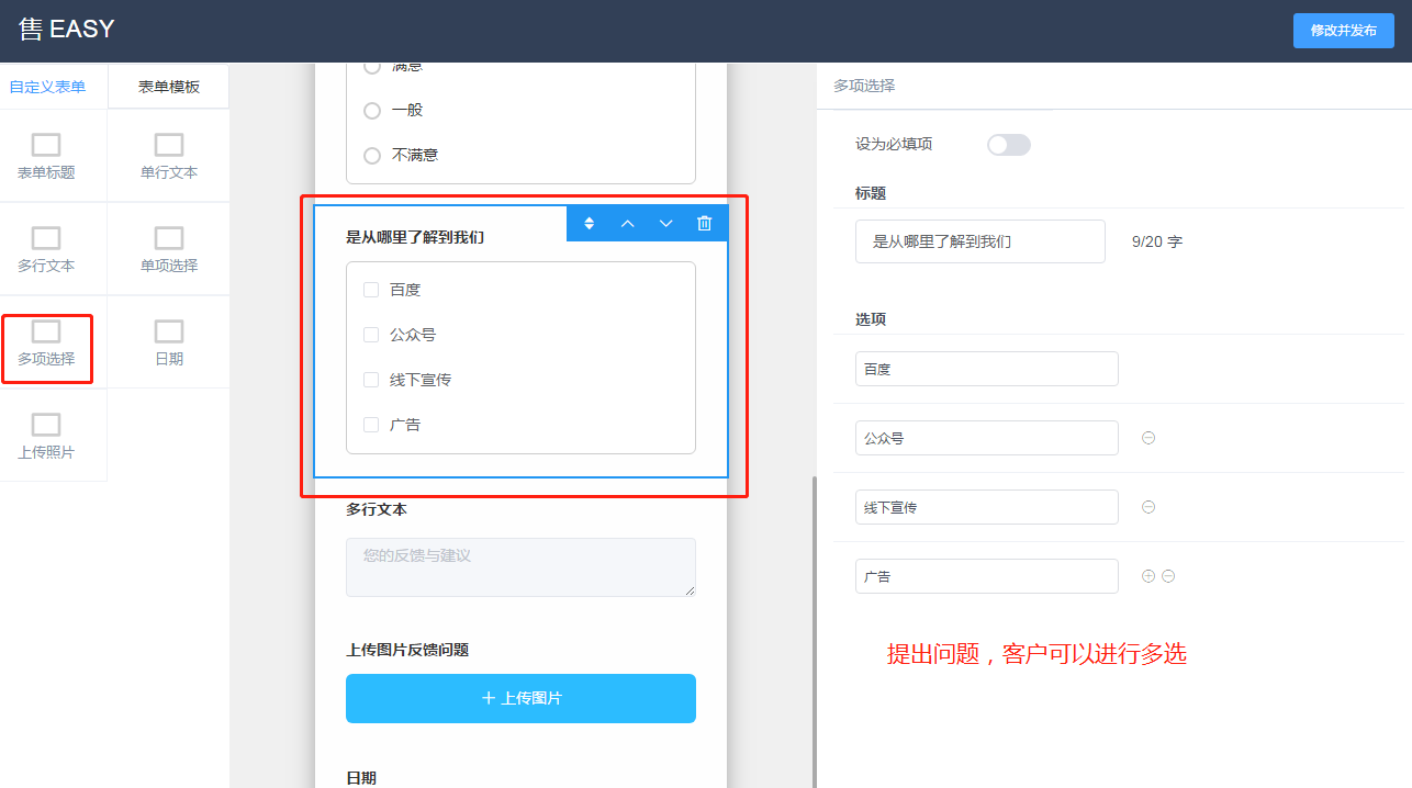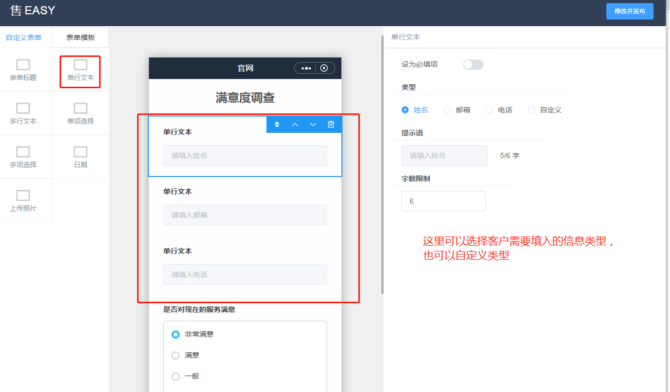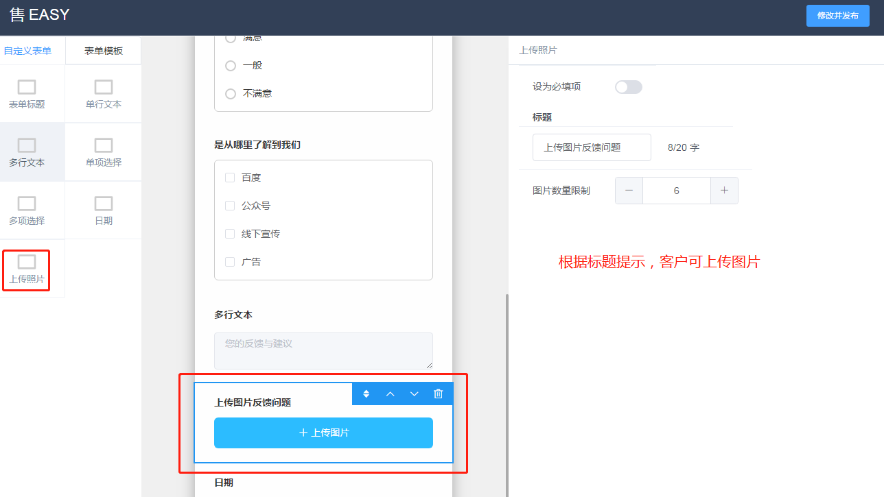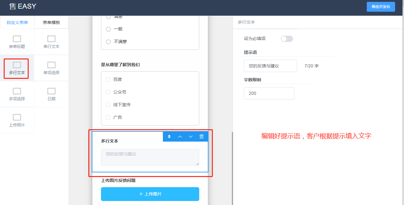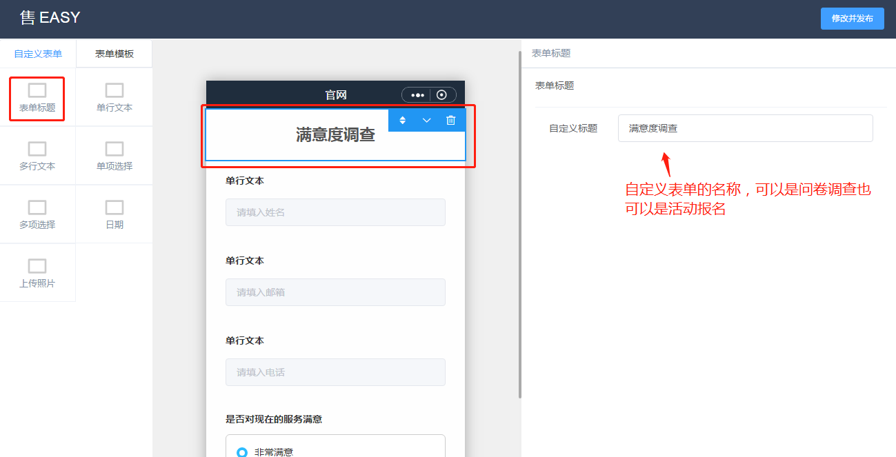 完成表单编辑后,点击【修改并发布】即保存了表单。
