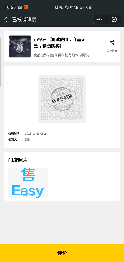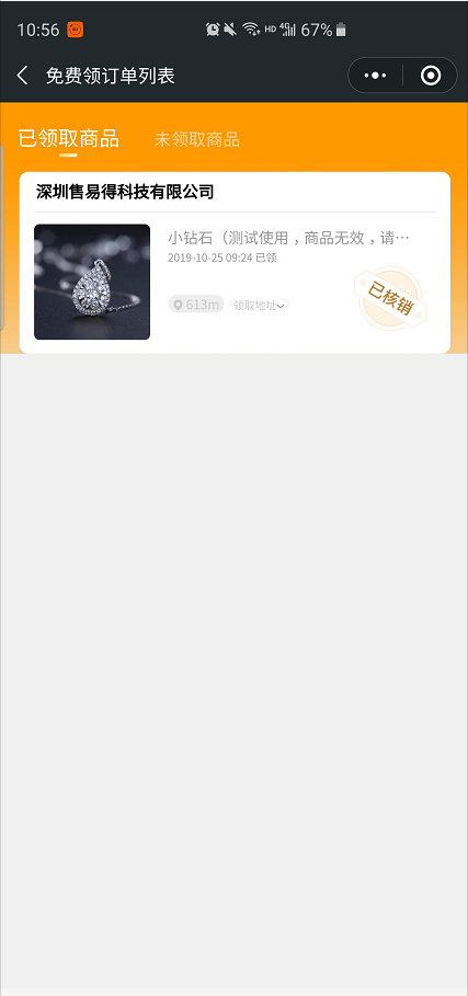 客户领取产品后,可以进行评价。在已领取的订单中,找到订单点击进入。