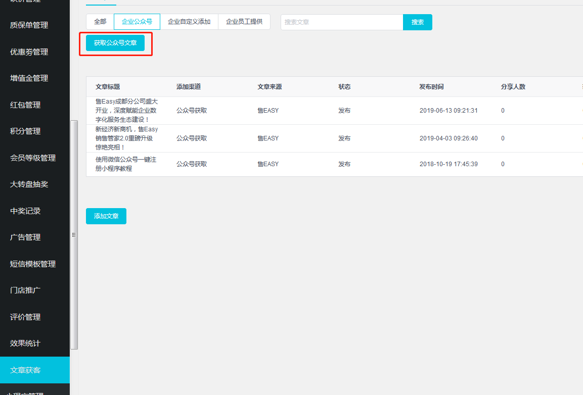 接下来选择【获取公众号文章】,一步将公众号文章同步过来。