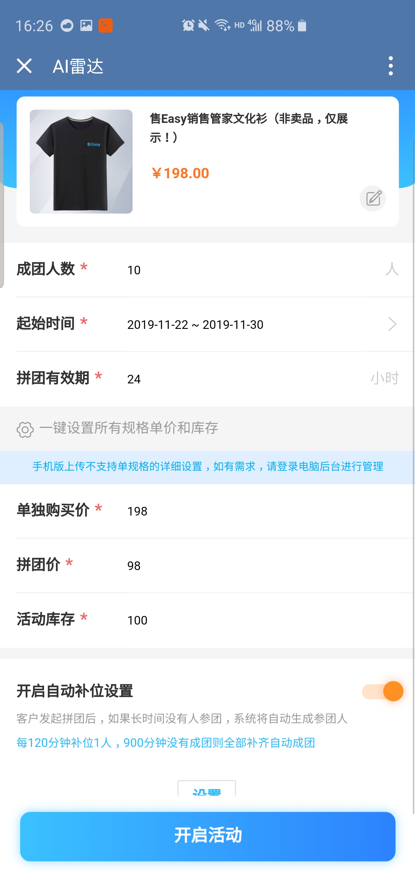 按照相应的提示填入数据,最后点击【开启活动】即可发布成功。