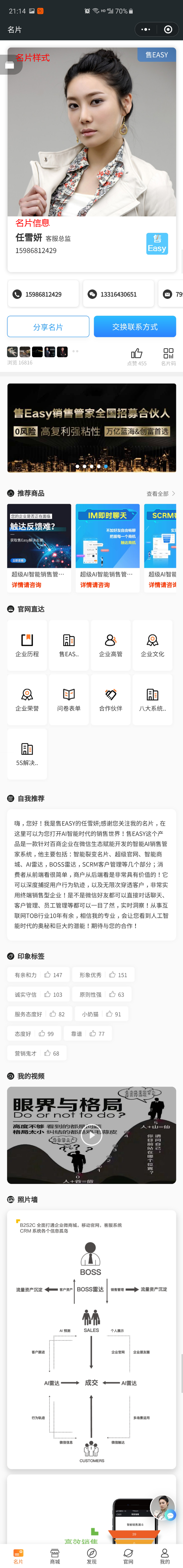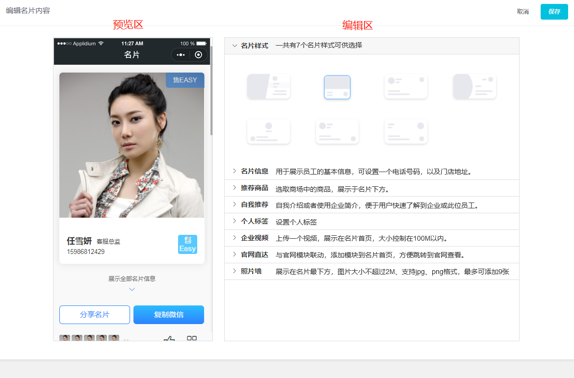 - 员工名片模板设置