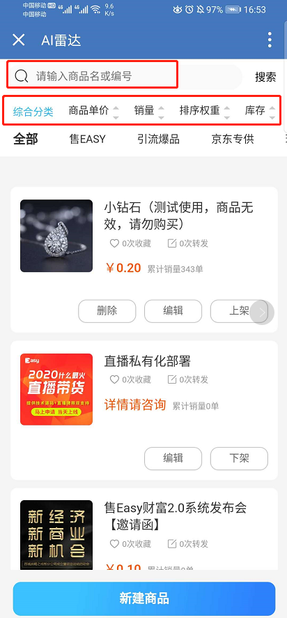 AI雷达——商品管理中可进行商品搜索、排序