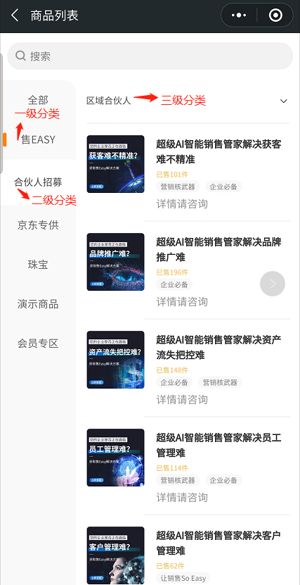 点击【添加二级分类】,可以添加一级分类下面的次级分类。