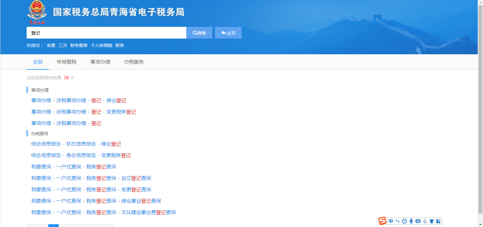 以企业账号登录的,鼠标放置于欢迎语处,可实现切换税务机关功能;以个人账号登录的,可实现切换身份功能,点击【选择主管税务机关】后,可切换到跨地区报验纳税人的税务机关。点击【切换身份】后,可切换到其他绑定企业。在搜索框内输入内容后搜索,显示查询结果,点击对应事项,可以直接跳转至对应功能路径。