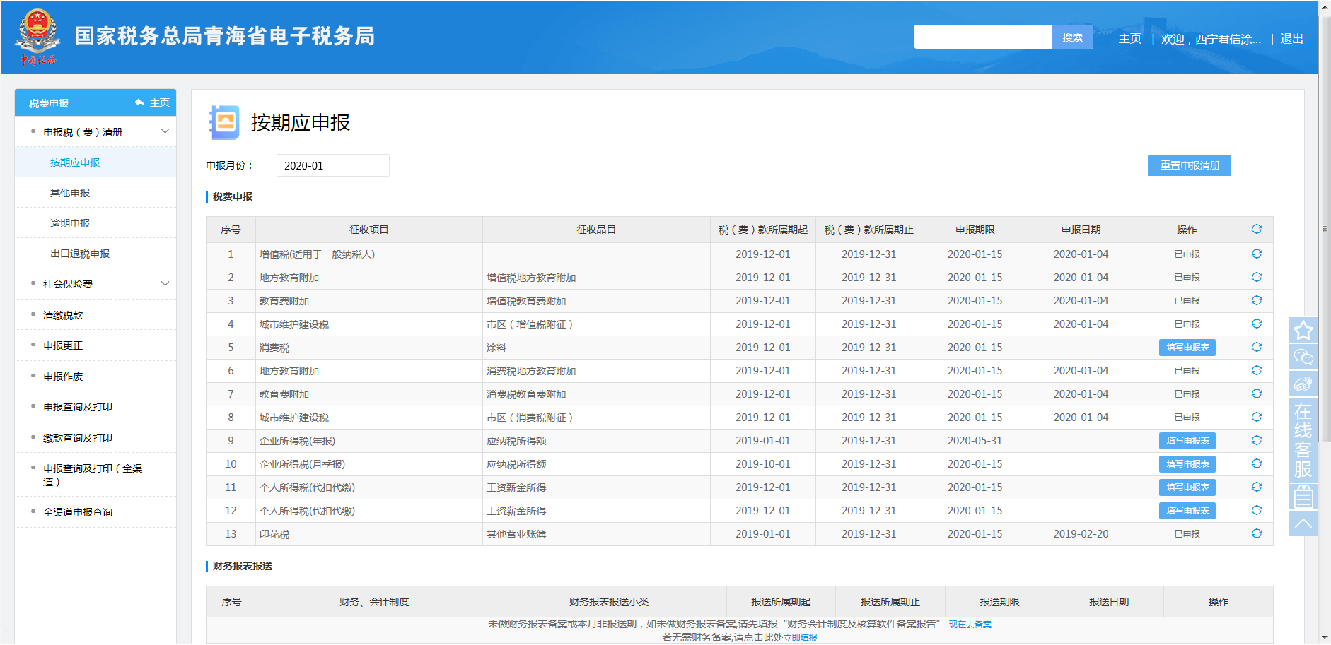 - (一)通用申报(税及附征税费)
