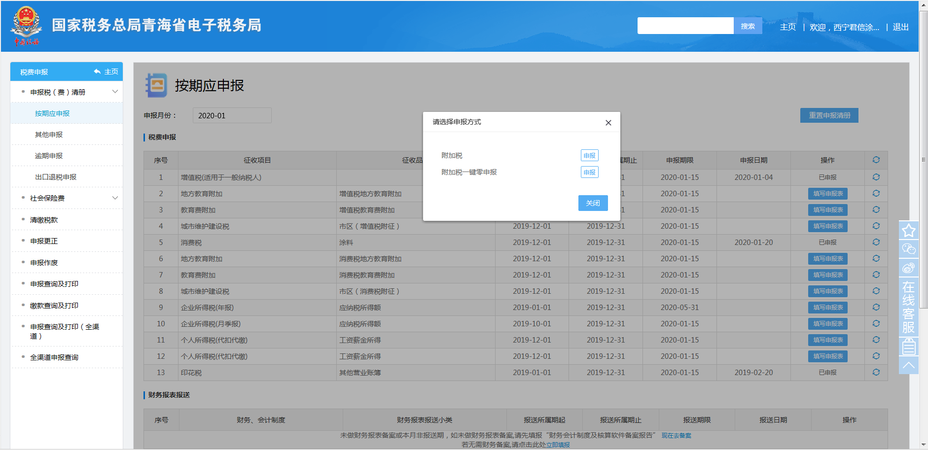 按期应申报→消费税地方教育附加→填写申报表→选择申报方式→申报