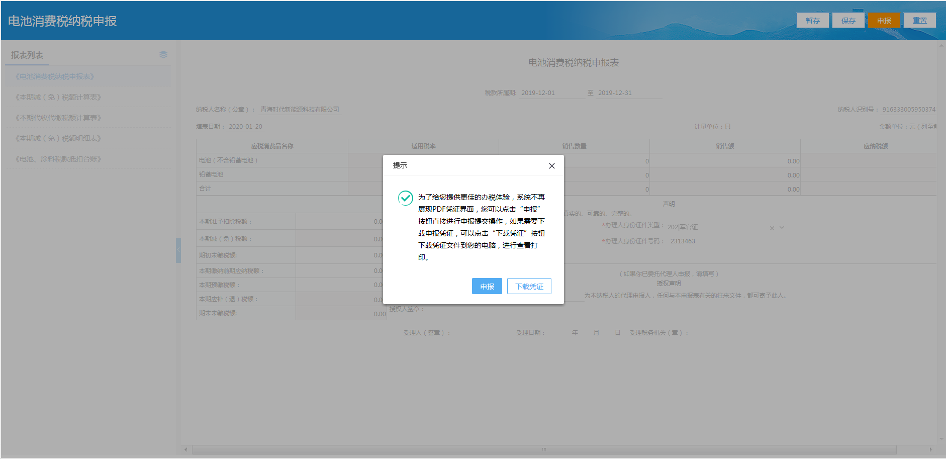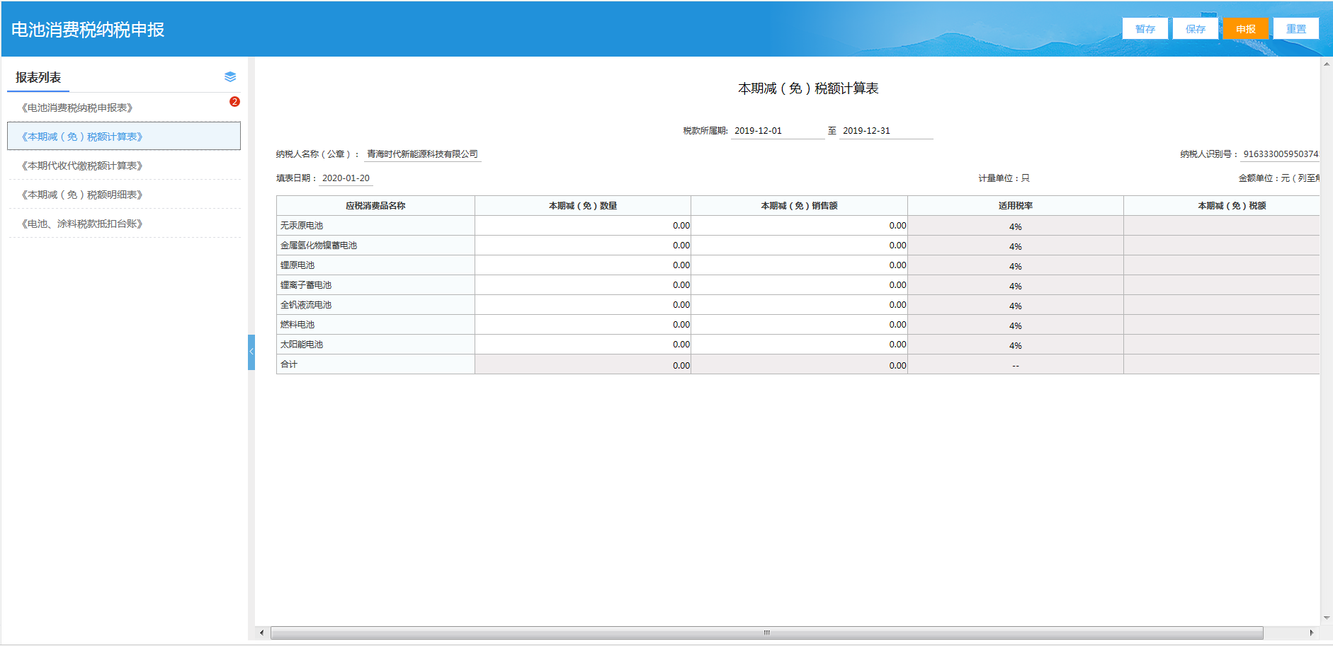 - (二)消费税-电池消费税纳税申报表