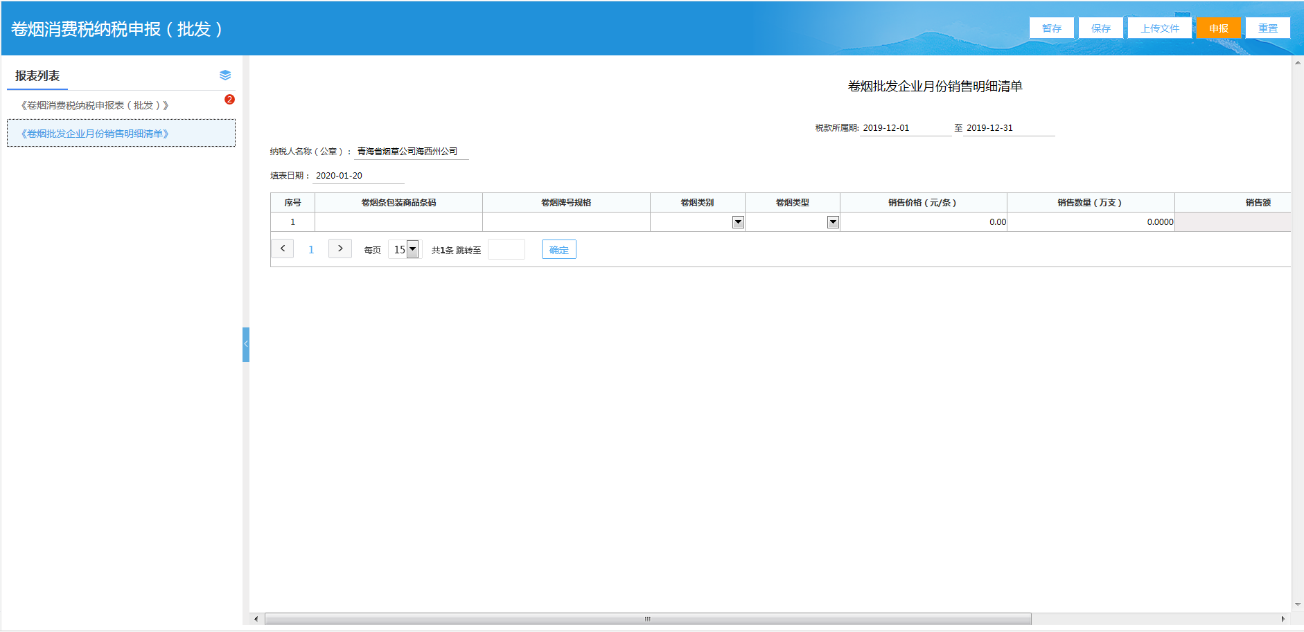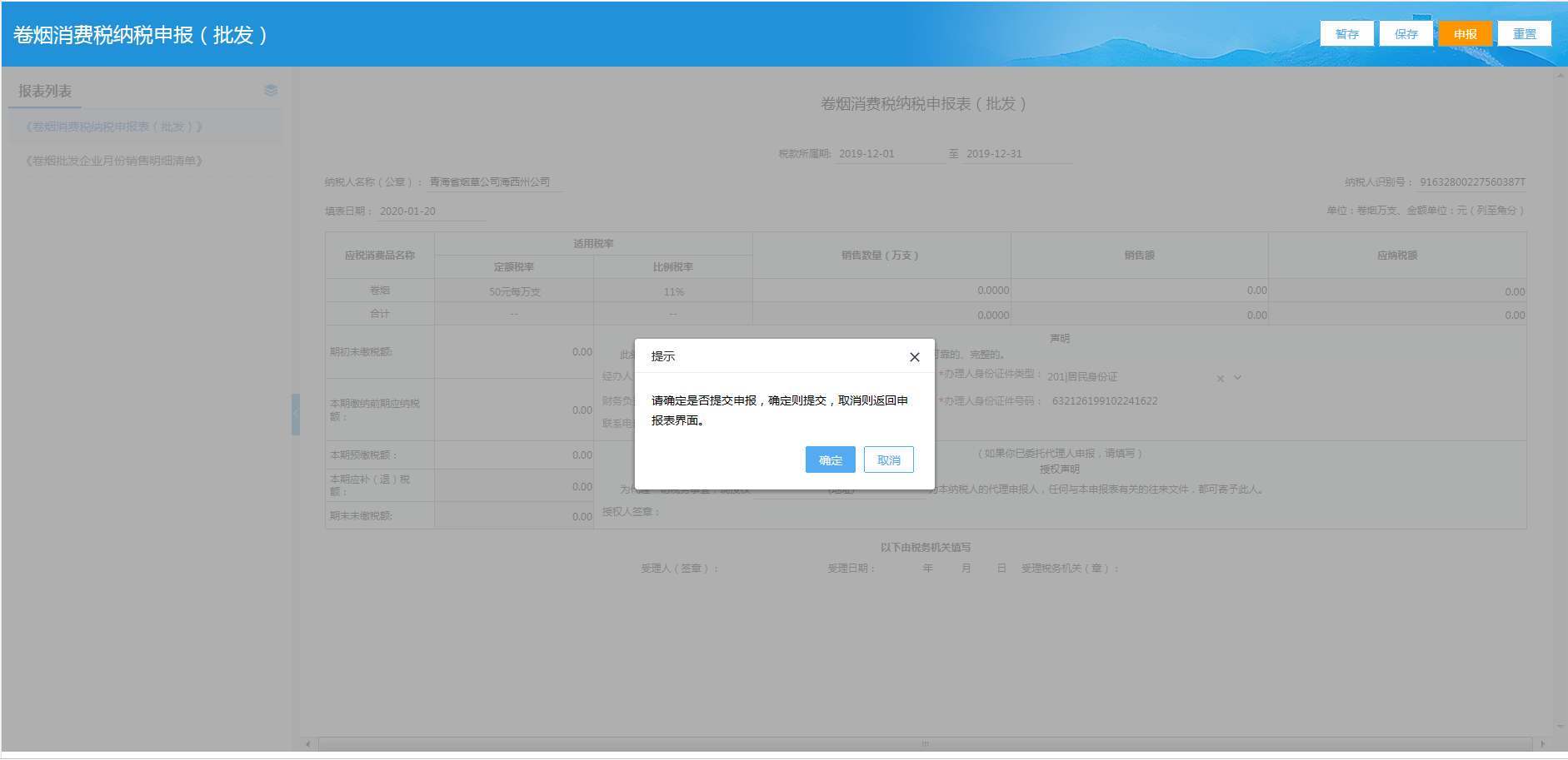 按期应申报→消费税→填写申报表
