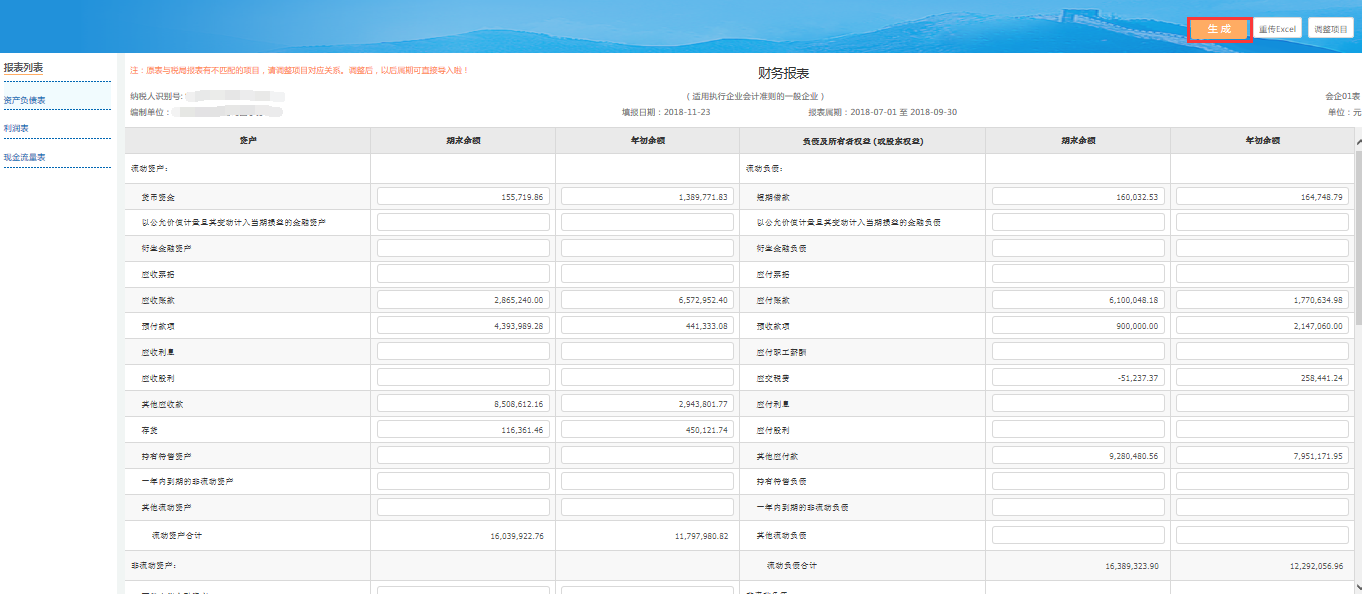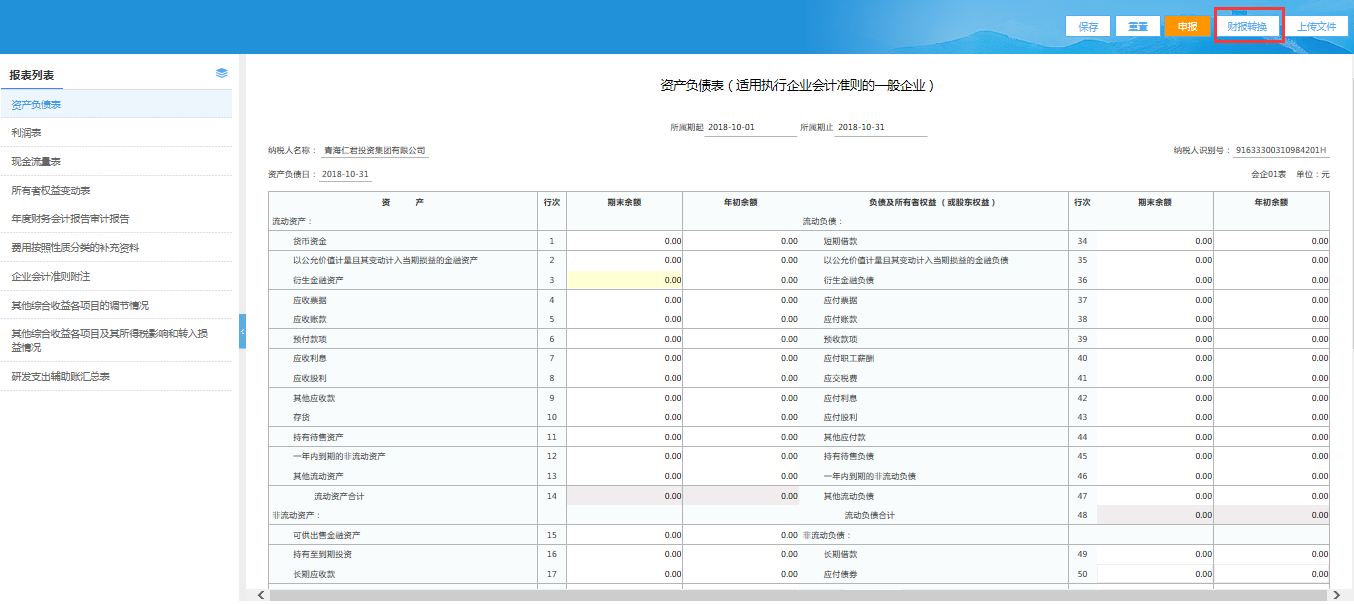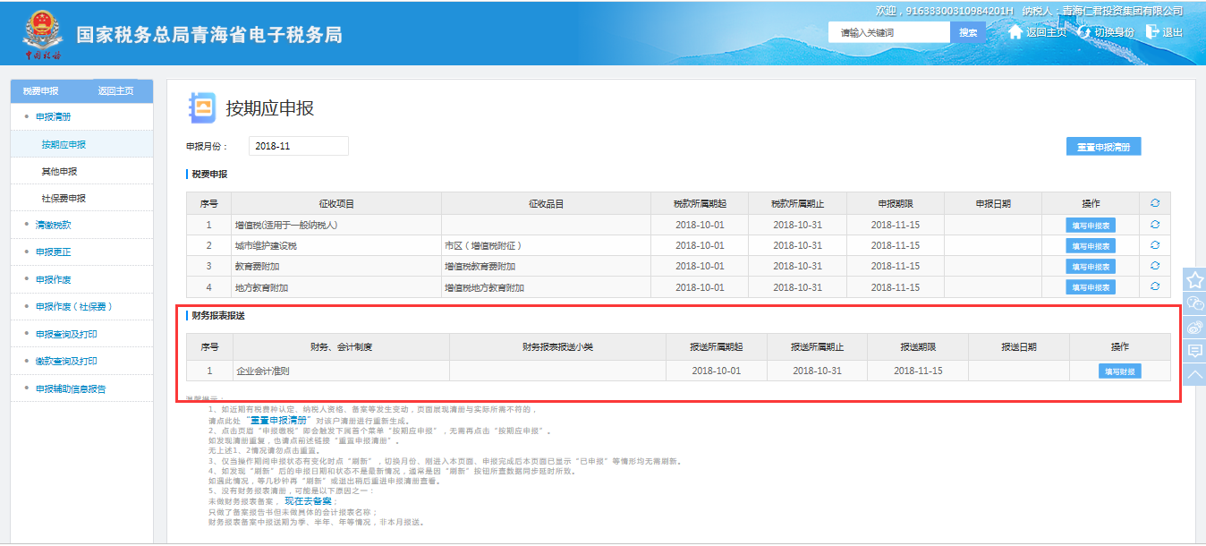 登录→电子税务局→我要办税→税费申报及缴纳→按期应申报→财务报表报送→企业会计准则→填写财报→下一步