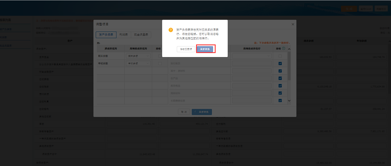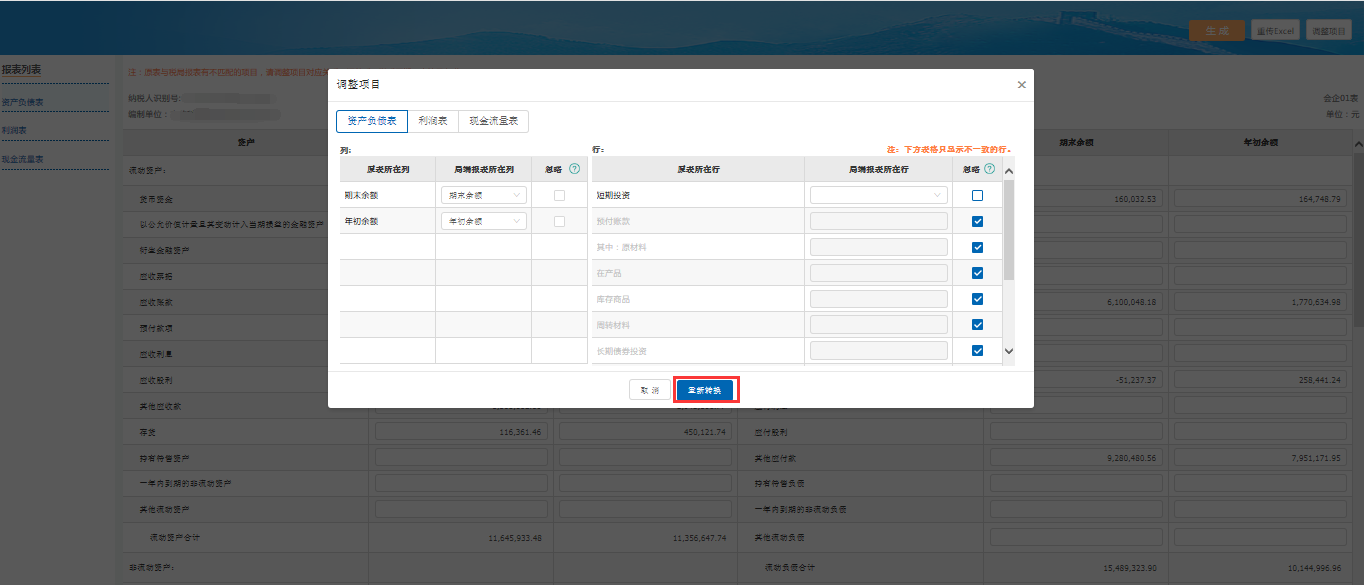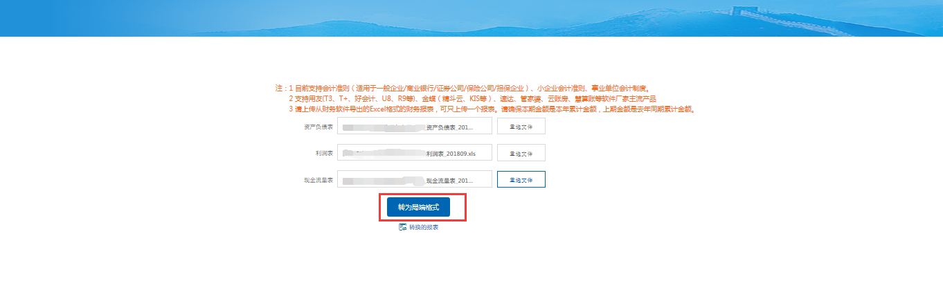 财务报表→数据转换→选择文件→打开→转为局端模式→生成