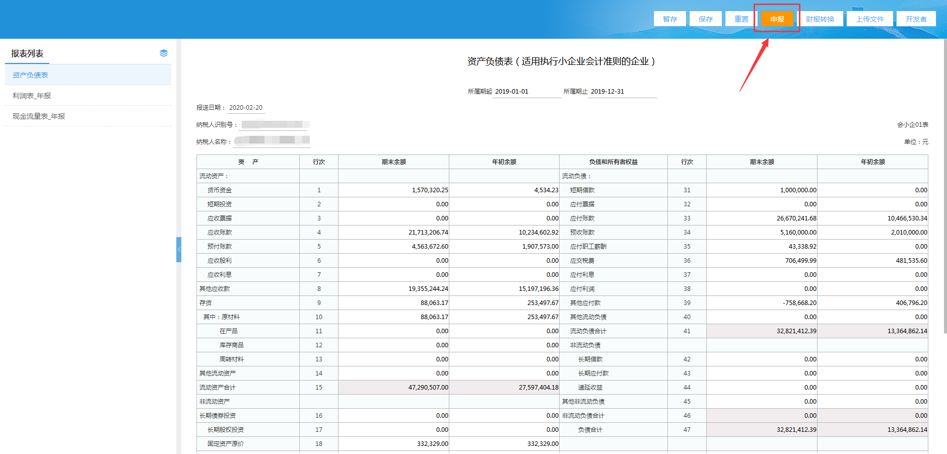 在中华人民共和国境内依法设立的、符合《中小企业划型标准规定》所规定的小型企业标准, 执行《小企业会计准则》的企业,应依照《小企业会计准则》、税收法律法规及相关规定,填制《资产负债表》、《利润表》、《现金流量表》。 1.纳税人财务会计报表报送期间原则上按季度和年度报送。确需按月报送的,由省、自治区、
