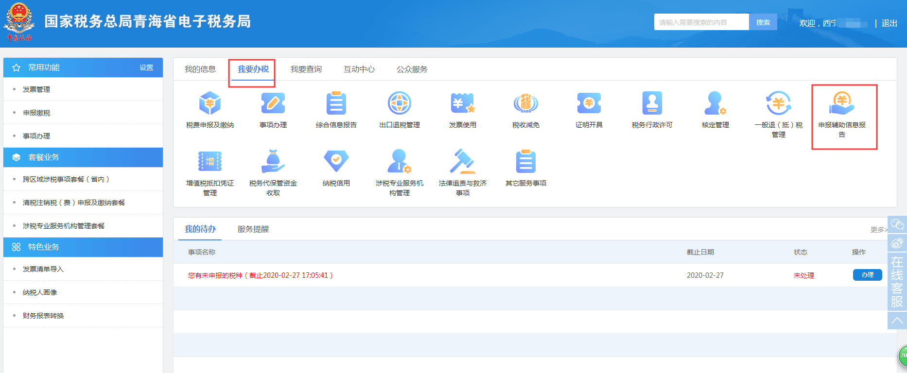 登录→电子税务局→我要办税→申报辅助信息报告→确认信息→下一步