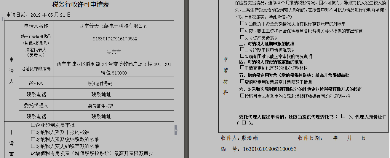 增值税专用发票最高开票限额审批申请所有审批流程核心审批