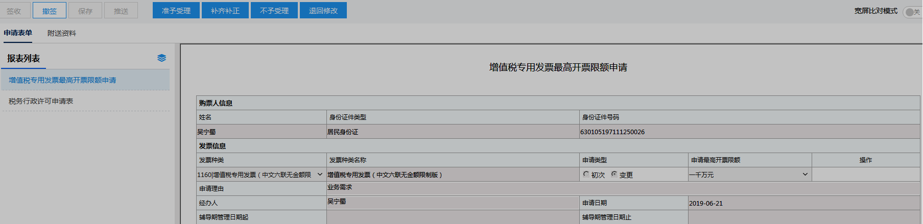 增值税专用发票最高开票限额审批申请推送到核心征管