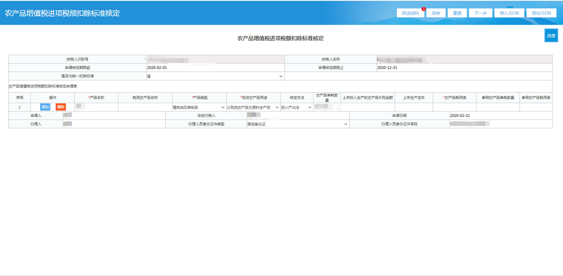 - 一、农产品增值税进项税额扣除标准核定申请