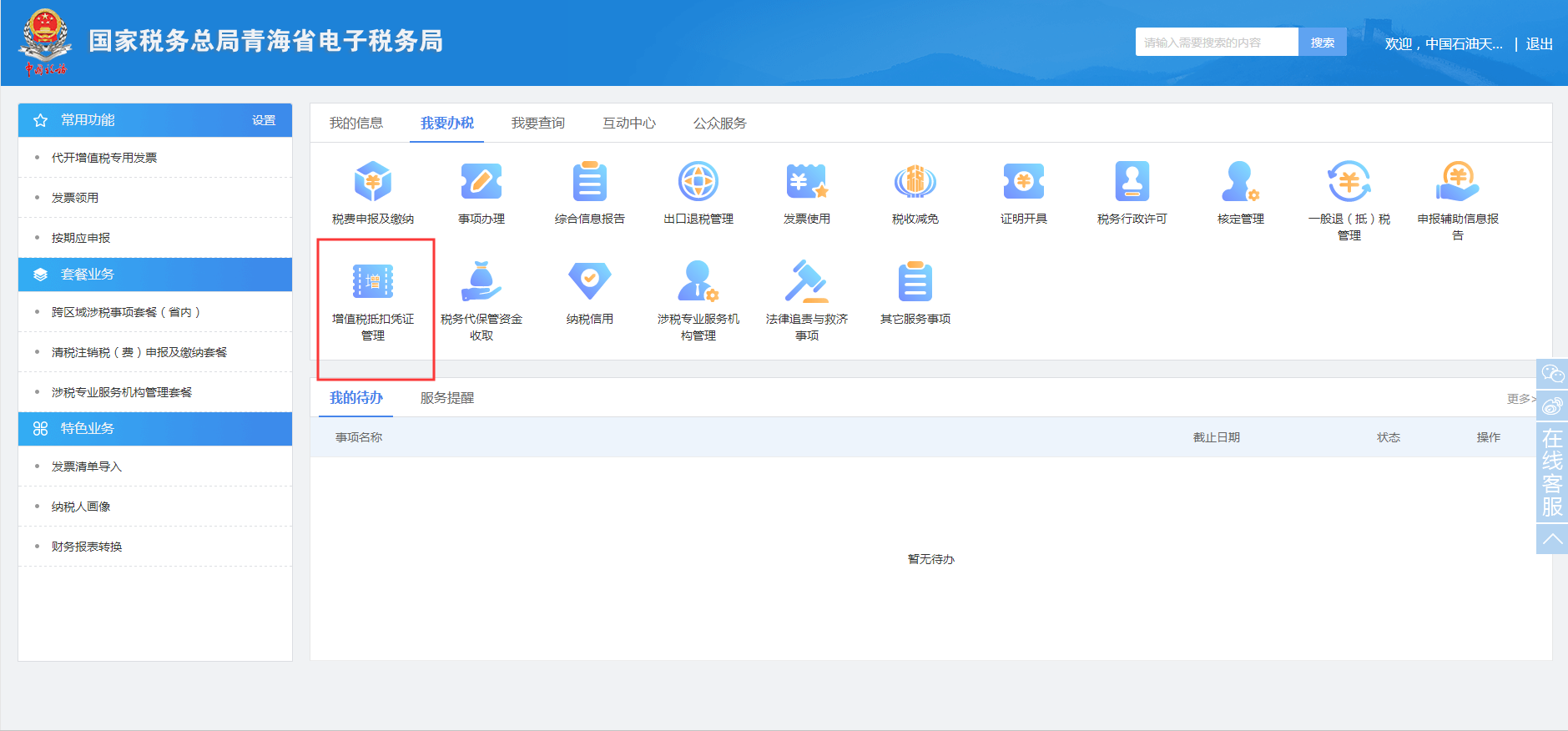 登录→电子税务局→我要办税→增值税抵扣凭证管理