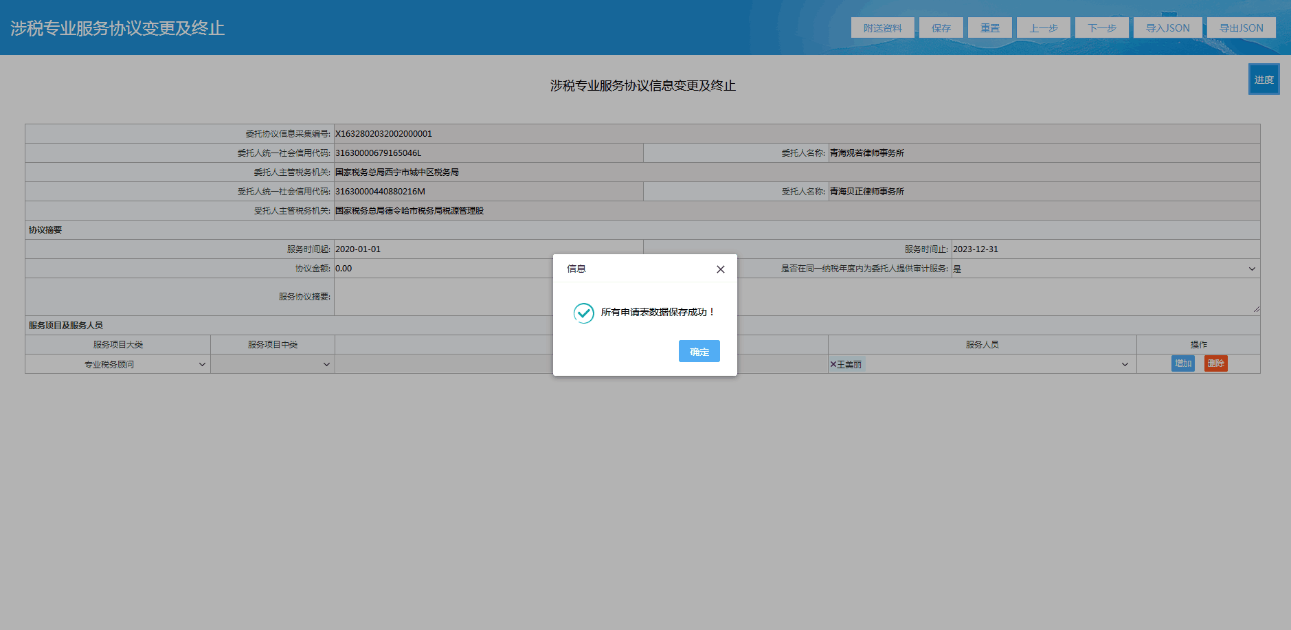 涉税专业服务协议信息发生变更或者整体服务协议提前终止时,涉税专业服