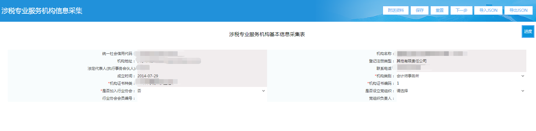 涉税专业服务协议机构信息采集
