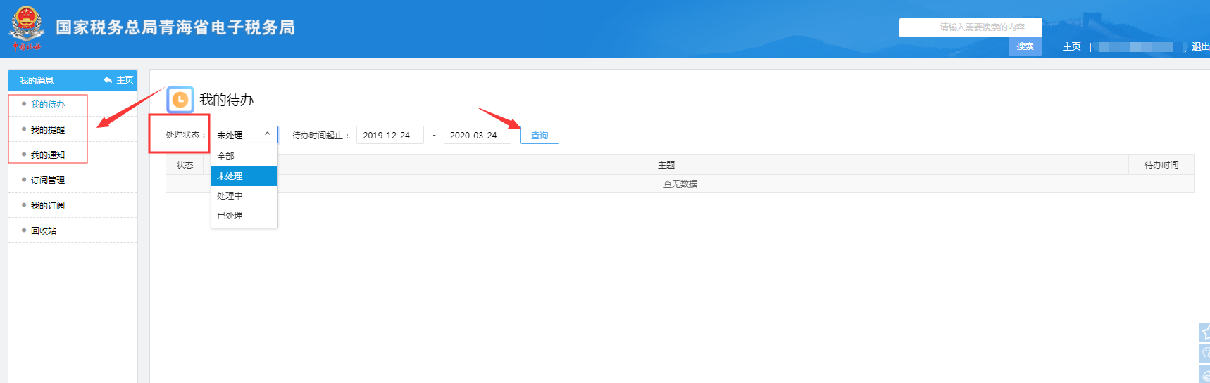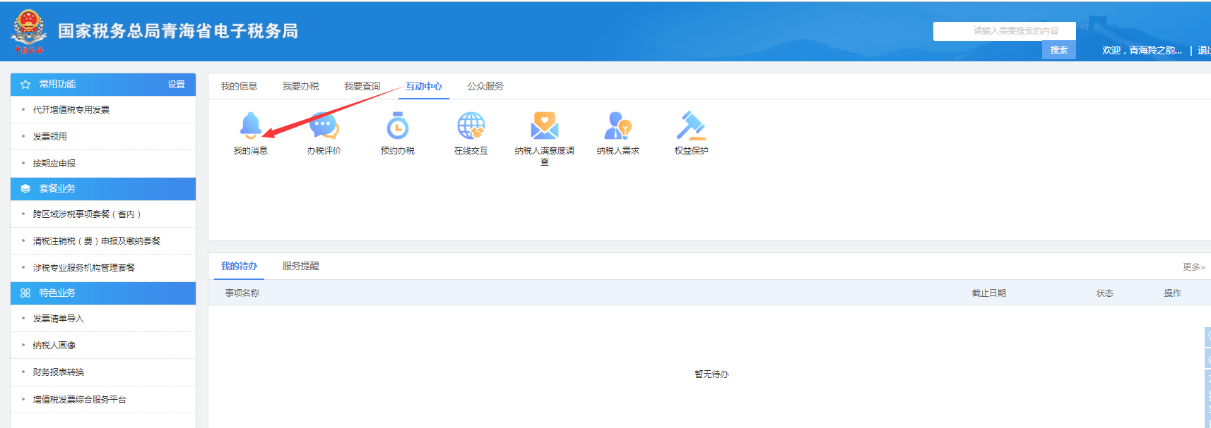 登录→电子税务局 →互动中心 → 我的消息及待办