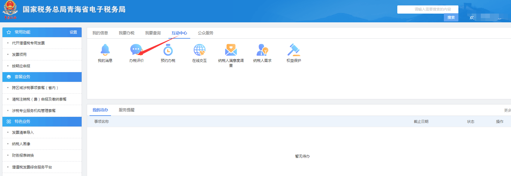登录→电子税务局 →互动中心 →办税评价