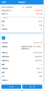 3.跳转为发票界面选择相关发票点击全选验旧。