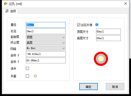 说明:导出为PCB文件时,补偿图形会被转换成**圆**输出,补偿图形不具有开窗效果,若需要补偿图形开窗可转换成焊盘并分层处理。