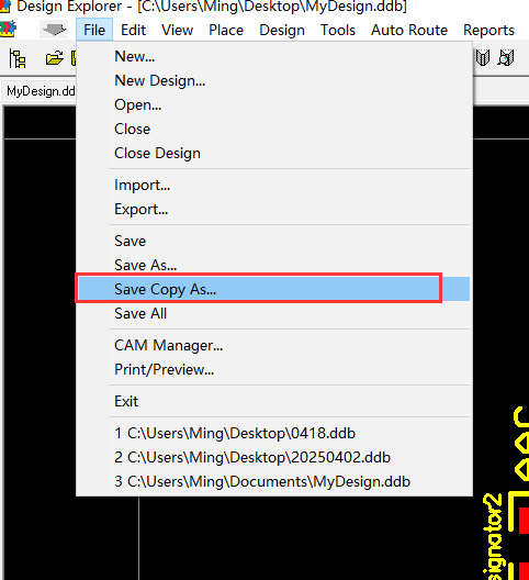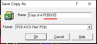 5. 将此文件导出,如C:\Copy of A.PCBDOC