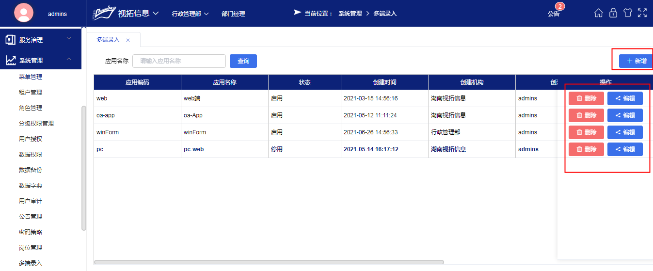 新增的多端录入默认是启用状态,被禁用的多端录入在“菜单管理”是无法显示。